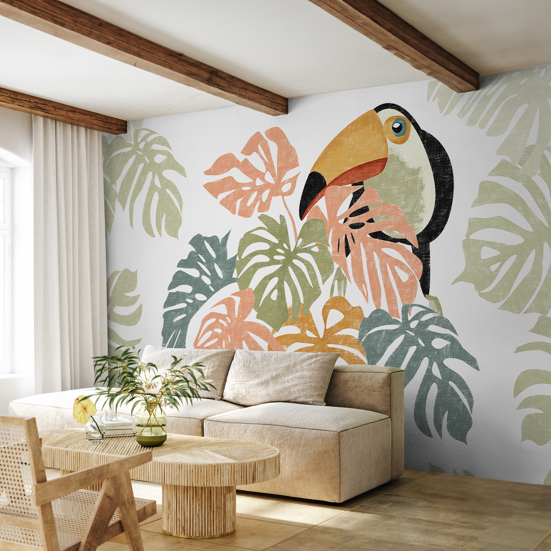 Τα χρώματα; Είναι ακριβώς τα σωστά – διακριτικά πράσινα, ζεστά πορτοκαλί και καταπραϋντικά μπλε… τέλεια για να προσθέσετε μια πινελιά περιπέτειας χωρίς να κατακλύσετε το δωμάτιό σας. Είναι ιδανικό για τους λάτρεις της φύσης ή για οποιονδήποτε επιθυμεί μια πινελιά ιδιοτροπίας στους τοίχους του.
