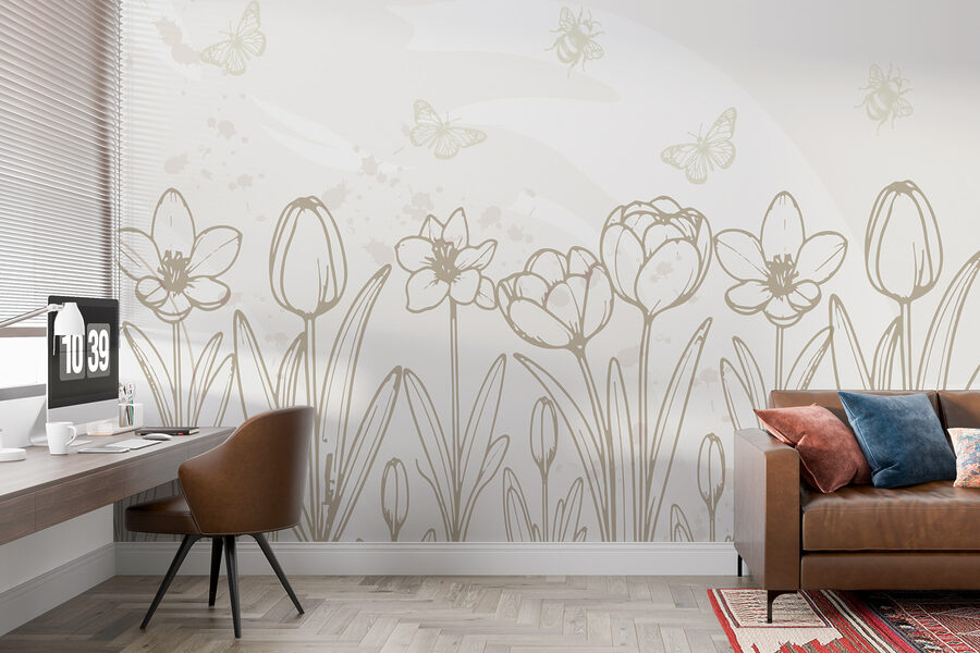 Η μεταμόρφωση ενός χώρου μπορεί να είναι τόσο εύκολη όσο η ανάρτηση αυτής της γοητευτικής τοιχογραφίας με γραμμικά σχέδια λουλουδιών και πεταλούδων. Φανταστείτε να μπαίνετε σε ένα δωμάτιο όπου τα ντελικάτα άνθη λικνίζονται απαλά μαζί με παιχνιδιάρικες πεταλούδες, δημιουργώντας μια σκηνή βγαλμένη κατευθείαν από έναν ηλιόλουστο κήπο. Οι απαλές γραμμές και η καταπραϋντική παλέτα προσκαλούν μια αίσθηση ηρεμίας, καθιστώντας την ιδανική για μια ζεστή γωνιά ή ένα ζωντανό καθιστικό. Είναι σαν να φέρνετε ένα κομμάτι της φύσης στους εσωτερικούς χώρους χωρίς τη γύρη. Οι φίλοι σίγουρα θα συγχαρούν τη φρέσκια ατμόσφαιρα και ποιος ξέρει – ίσως μια ή δύο πεταλούδες να πετάξουν μέσα για να συμμετάσχουν στη διασκέδαση!