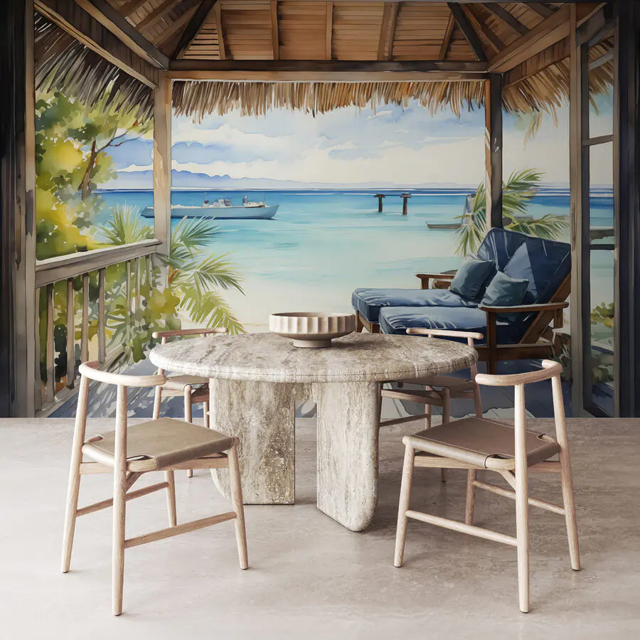 Φανταστείτε να μεταφέρεστε σε μια ονειρεμένη παραθαλάσσια απόδραση χωρίς καν να βγείτε από το σαλόνι σας! Αυτή η τοιχογραφία μεταμορφώνει οποιονδήποτε χώρο σε μια ήρεμη παραθαλάσσια απόδραση – φανταστείτε μια μέρα όπου το μόνο που έχετε να κάνετε είναι να βυθιστείτε σε αυτές τις φιλόξενες καρέκλες. Νιώστε το απαλό αεράκι από τα κύματα με τις νερομπογιές, ακούστε το απαλό θρόισμα των φοινικόδεντρων. Ιδανικό για την ψυχή που αγαπά τη φύση ή για οποιονδήποτε αναζητά μια γαλήνια ατμόσφαιρα. Είναι σαν να έχετε θέα στον ωκεανό, χωρίς την άμμο στα παπούτσια σας. Ιδανικό για να πυροδοτήσετε ονειροπολήσεις ή να εμπνεύσετε ένα αυθόρμητο τροπικό πάρτι!