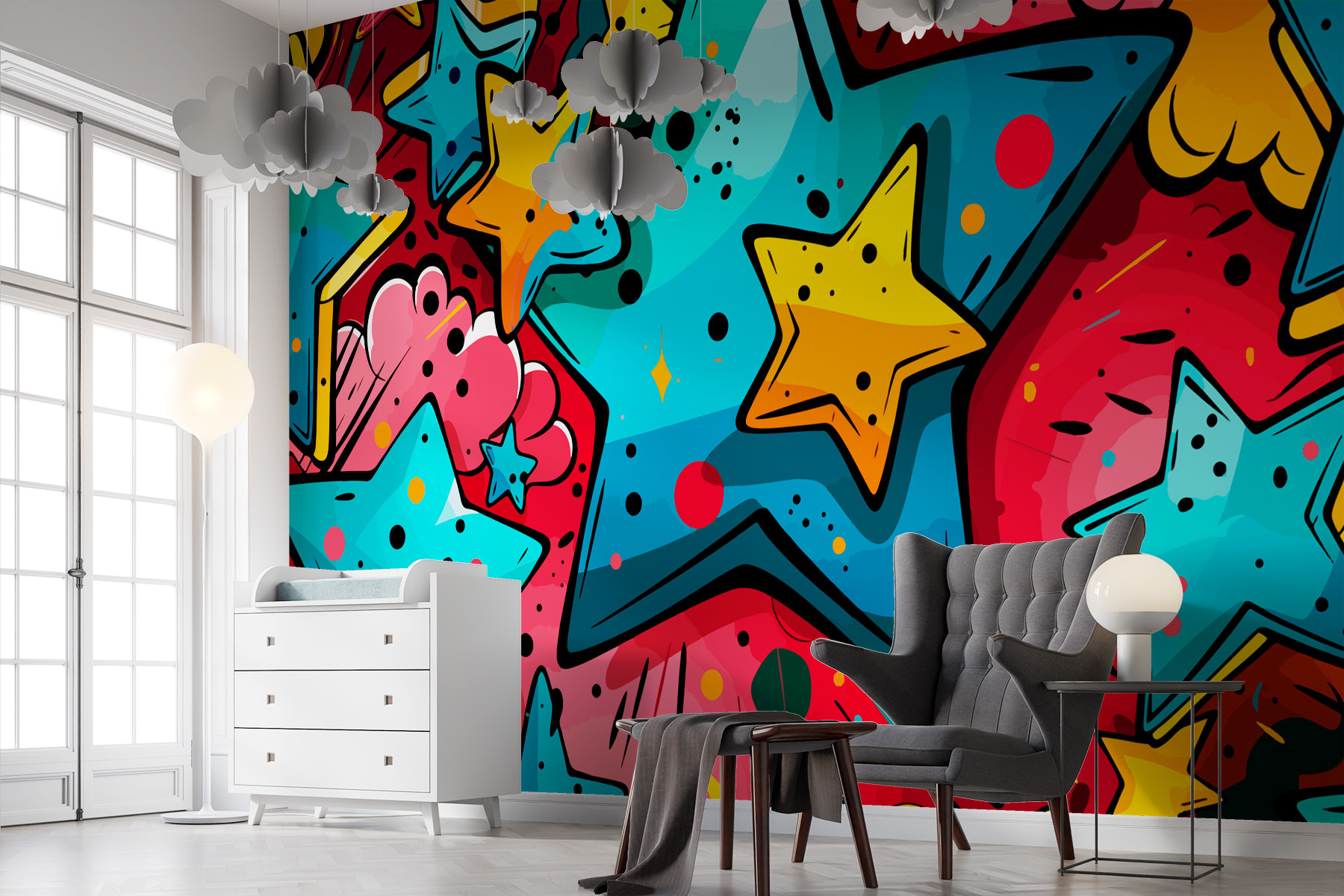 Φανταστείτε να μπαίνετε σε ένα δωμάτιο και να μεταφέρεστε αμέσως σε έναν γαλαξία γεμάτο ιδιοτροπίες και θαύματα. Αυτό ακριβώς κάνει η τοιχογραφία “Πολύχρωμο μοτίβο αστεριών”. Είναι σαν ένα πάρτι στον τοίχο σας που δεν τελειώνει ποτέ! Γεμάτη με ζωηρά αστέρια και παιχνιδιάρικες χρωματικές πινελιές, είναι ιδανική για όποιον θέλει μια πινελιά διασκέδασης στο χώρο του. Φανταστείτε ένα παιδί να μπαίνει μέσα και να αγκομαχάει από χαρά ή έναν ενήλικα που ξαφνικά ξαναγίνεται ονειροπόλος. Είναι τέχνη που κάνει τους ανθρώπους να μιλούν και να ονειρεύονται – όλοι θα ρωτήσουν για αυτόν τον εκθαμβωτικό τοίχο!