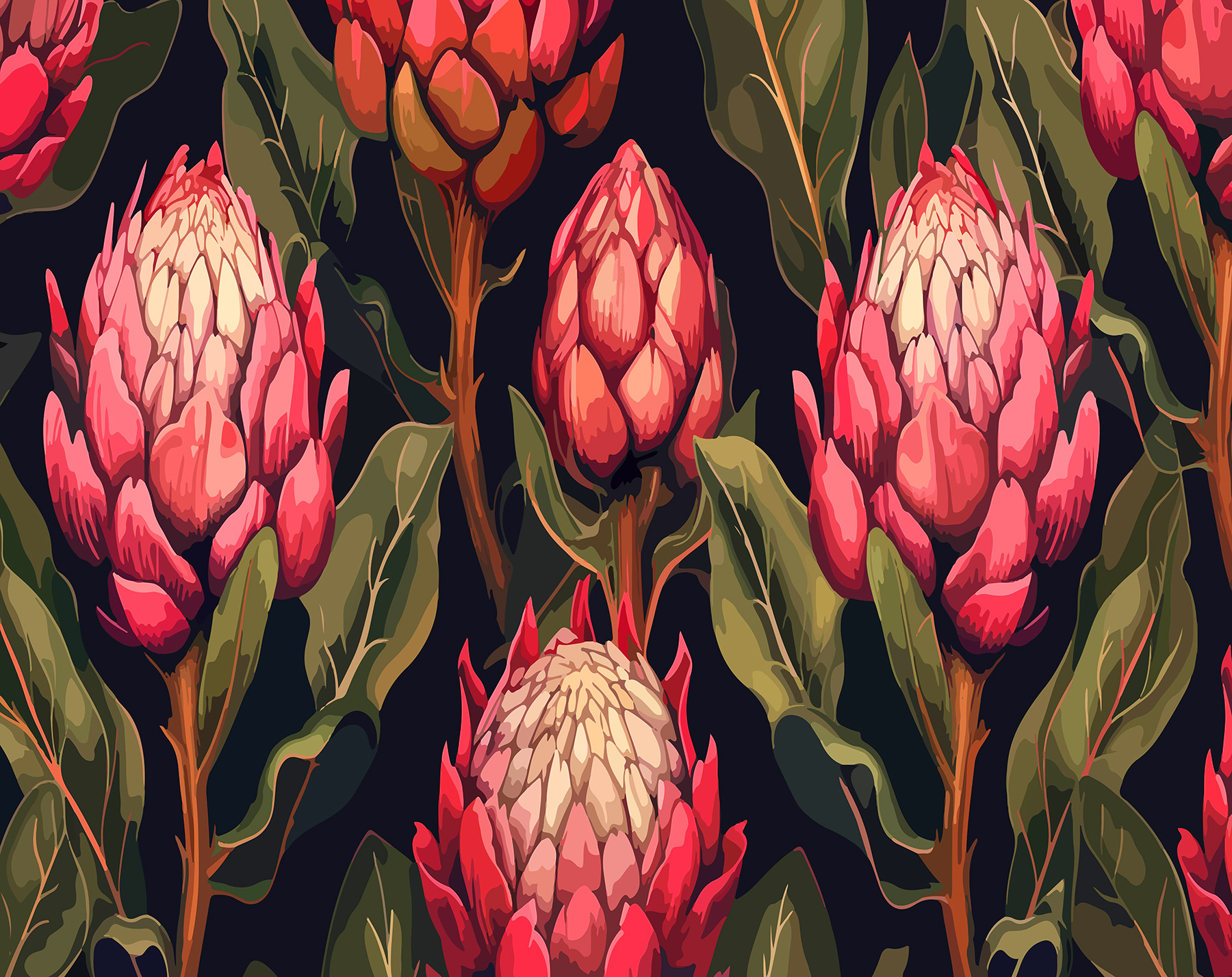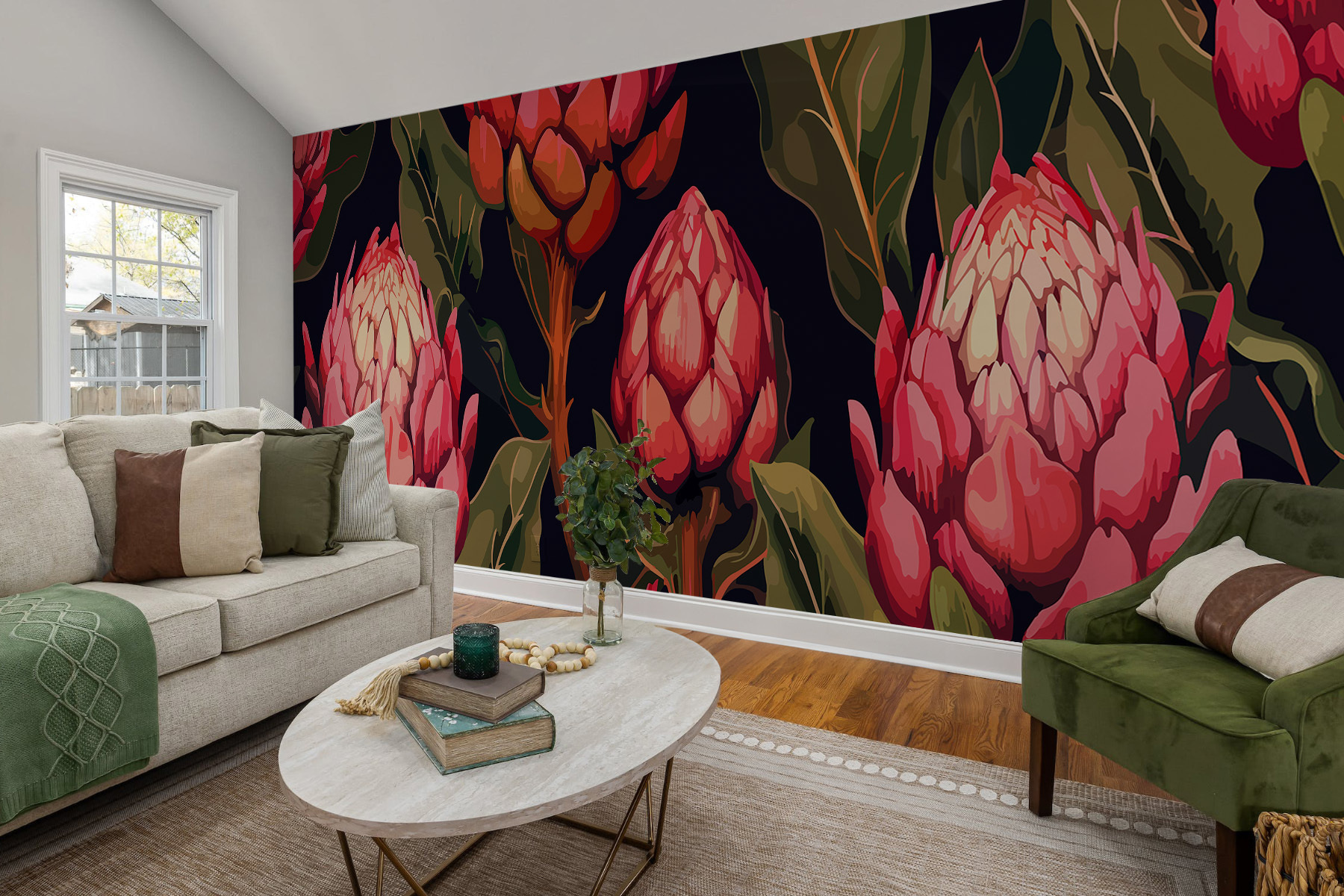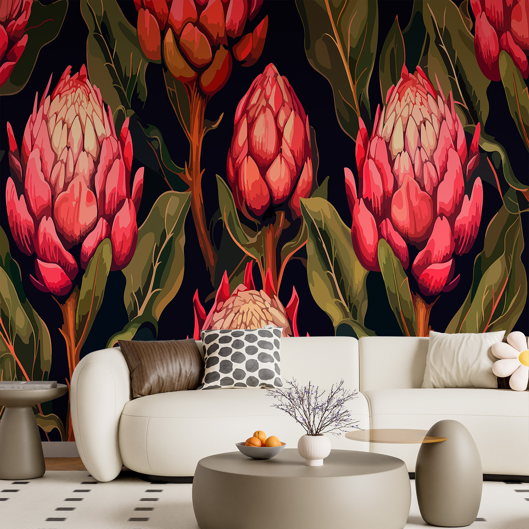 Μεταμορφώστε οποιονδήποτε τοίχο σε μια ζωντανή όαση με την τοιχογραφία Blooming Proteas. Φανταστείτε το: μια έκρηξη ζωηρών χρωμάτων και εντυπωσιακών σχεδίων λουλουδιών που σχεδόν χορεύουν στο χώρο σας. Είναι σαν να φέρνετε ένα μικρό κομμάτι της φύσης μέσα στο σπίτι, χωρίς το ποτιστήρι ή τις ενοχλητικές αλλεργίες από τη γύρη. Αυτή η τοιχογραφία δεν κάθεται απλώς εκεί – πυροδοτεί συζητήσεις και ανεβάζει τη διάθεση. Φανταστείτε ζεστά βράδια, φίλους να θαυμάζουν την ομορφιά, ή ήσυχα πρωινά που περνάτε πίνοντας τον καφέ σας, νιώθοντας ότι περιβάλλεστε από έναν καταπράσινο κήπο. Είτε πρόκειται για ένα σαλόνι είτε για μια ζεστή γωνιά, αυτή η τοιχογραφία προσκαλεί ζεστασιά και χαρά. Ιδανική για κάθε σημείο που χρειάζεται μια πινελιά προσωπικότητας!