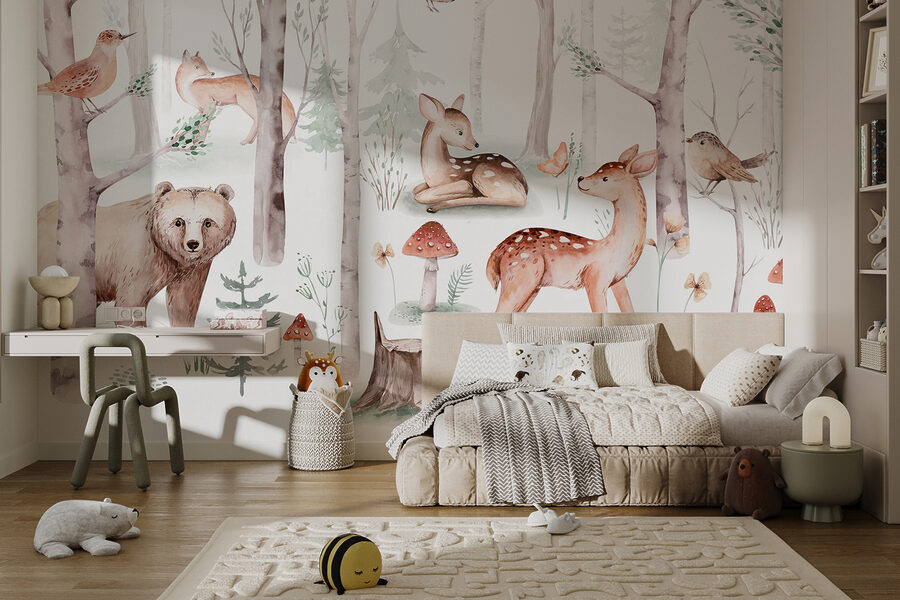 Βυθιστείτε σε ένα αλλόκοτο δάσος με αυτή τη γοητευτική τοιχογραφία. Φανταστείτε να έχετε μια ζεστή δασική γωνιά στο δικό σας χώρο, γεμάτη με φιλικά ελάφια, περίεργες αλεπούδες και πουλιά που κελαηδούν απαλά. Είναι σαν μια ευγενική σκηνή από παραμύθι που εκτοξεύεται στον τοίχο σας! Ιδανικό για τους λάτρεις της φύσης ή για οποιονδήποτε χρειάζεται μια άμεση απόδραση. Φανταστείτε να πίνετε τσάι, με ένα βιβλίο στο χέρι, ενώ αυτό το γαλήνιο σκηνικό σας καλεί να χαλαρώσετε. Ποιος να το φανταζόταν ότι η τέχνη τοίχου θα μπορούσε να είναι τόσο… ειρηνική; Μεταμορφώστε το δωμάτιό σας σε ένα καταπραϋντικό καταφύγιο όπου το δάσος είναι πάντα ανθισμένο.