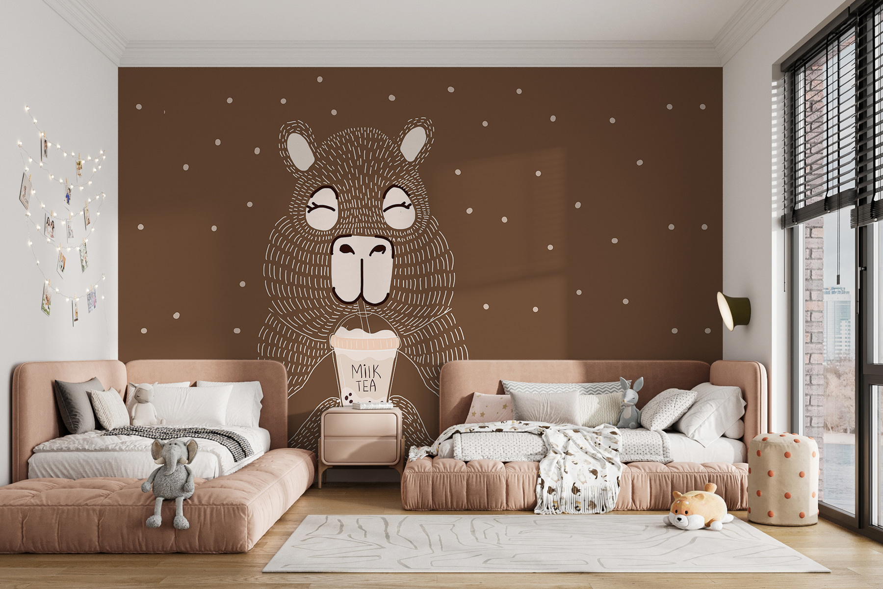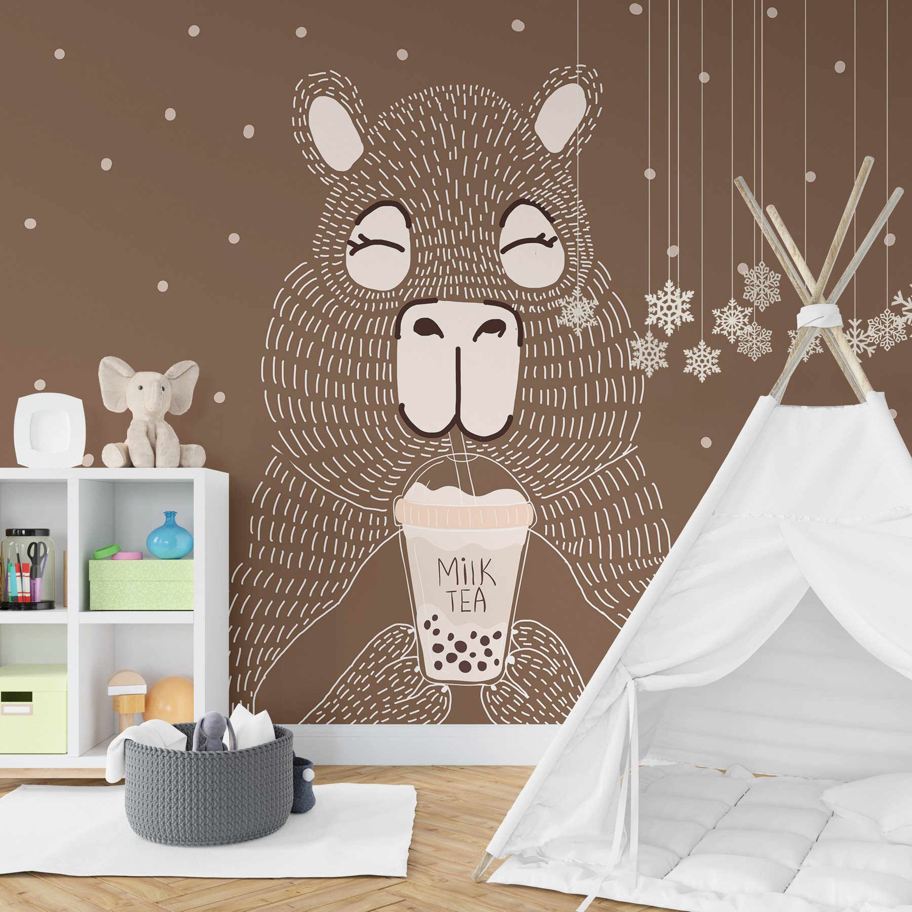 Σκεφτήκατε ποτέ πώς μια πινελιά ιδιοτροπίας μπορεί να φωτίσει ένα δωμάτιο; Εισάγετε την τοιχογραφία “Ζώο καρτούν που κρατάει ένα φλιτζάνι τσάι με γάλα”. Φανταστείτε αυτό: ένα γοητευτικό πλάσμα, με ροδομάγουλα, που πίνει ευτυχισμένο τσάι γάλακτος. Είναι σαν μια ζεστή αγκαλιά για τους τοίχους σας! Ιδανικό για να ζωντανέψει ένα παιδικό δωμάτιο ή ακόμα και μια ιδιόμορφη γωνιά της κουζίνας. Φανταστείτε τους καλεσμένους σας να γελούν με την παιχνιδιάρικη διάθεση του – ξαφνικά το σπίτι σας θα είναι ακόμα πιο ζεστό. Δεν είναι απλώς διακόσμηση- είναι μια καθημερινή μικρή υπενθύμιση για να απολαμβάνετε τις απλές απολαύσεις της ζωής, μια γουλιά τη φορά.