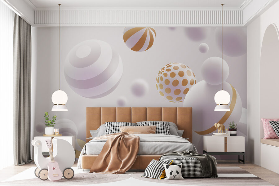 “Κομψές σφαίρες σε μια γαλήνια ροή” αποτυπώνει τη μαγεία του να βλέπεις τις φυσαλίδες να χορεύουν στον αέρα – χωρίς να χρειάζεται να τις κυνηγήσεις. Αυτή η τοιχογραφία είναι ιδανική αν σας αρέσει αυτή η ευρύχωρη, ευάερη ατμόσφαιρα, αλλά δεν θέλετε να μετακινηθείτε. Οι σφαίρες μοιάζουν να παρασύρονται και να στροβιλίζονται, δημιουργώντας ένα τρισδιάστατο εφέ που θα κάνει τους τοίχους σας να σκάσουν, κυριολεκτικά. Φανταστείτε να πίνετε καφέ, αφήνοντας το μυαλό σας να περιπλανηθεί μέσα σε αυτές τις παιχνιδιάρικες σφαίρες – ο δικός σας κήπος Ζεν. Είναι σαν στιγμιαία ηρεμία, χωρίς την ανάγκη για στρώμα γιόγκα ή εφαρμογή διαλογισμού. Ποιος ήξερε ότι η γεωμετρία μπορεί να είναι τόσο καταπραϋντική;
