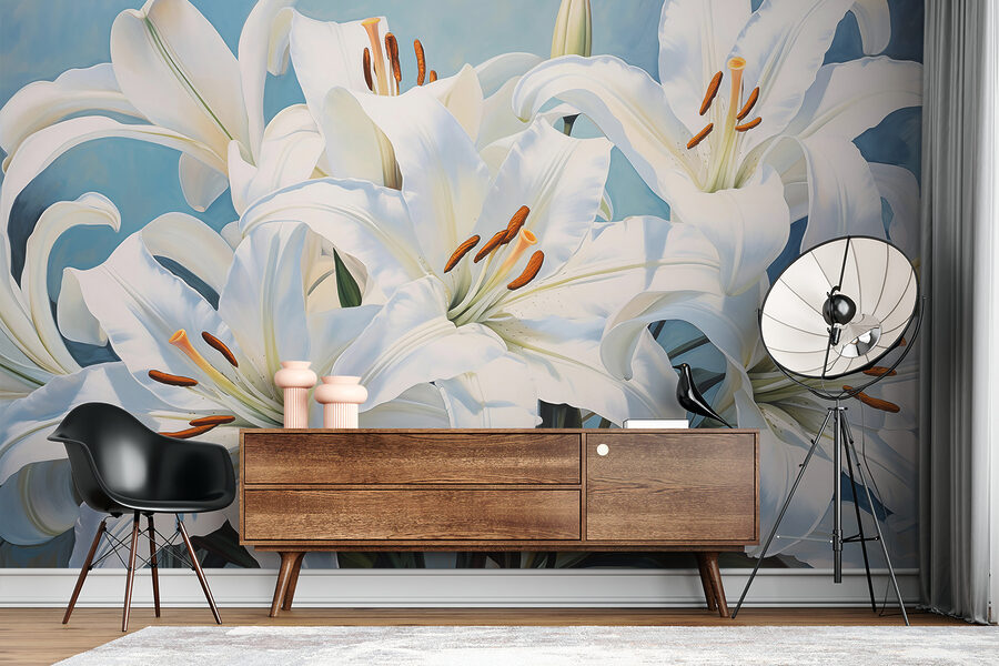 Μεταμορφώστε το χώρο σας με αυτή την εκπληκτική τοιχογραφία τοίχου, με κομψά λευκά κρίνα σε πλήρη άνθιση. Είναι σαν να έχετε έναν κήπο στον τοίχο σας, φέρνοντας μια πινελιά φύσης στους εσωτερικούς χώρους. Φανταστείτε να ξυπνάτε κάθε πρωί με αυτά τα υπέροχα άνθη, σαν να σας ψιθυρίζουν “Καλημέρα!”. Είναι τέλειο για να φωτίσετε μια ζεστή γωνιά ή να κάνετε μια δήλωση σε ένα μεγαλύτερο δωμάτιο. Τα απαλά χρώματα δημιουργούν μια ηρεμιστική ατμόσφαιρα, προσκαλώντας στιγμές ηρεμίας. Οι φίλοι θα σταματήσουν και θα θαυμάσουν, ρωτώντας ενδεχομένως πού βρήκατε ένα τόσο μοναδικό κομμάτι. Είναι ένας αβίαστος τρόπος για να προσθέσετε ομορφιά χωρίς να χρειάζεστε πράσινο αντίχειρα!