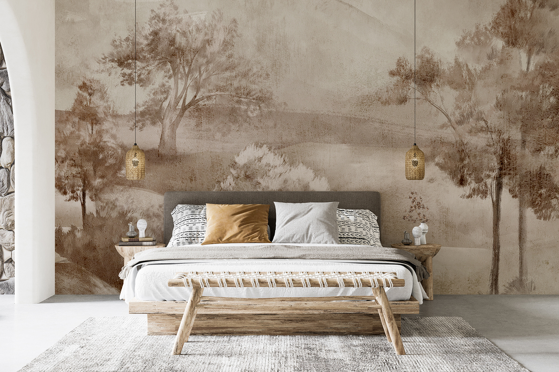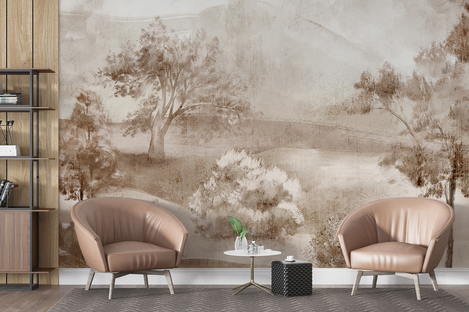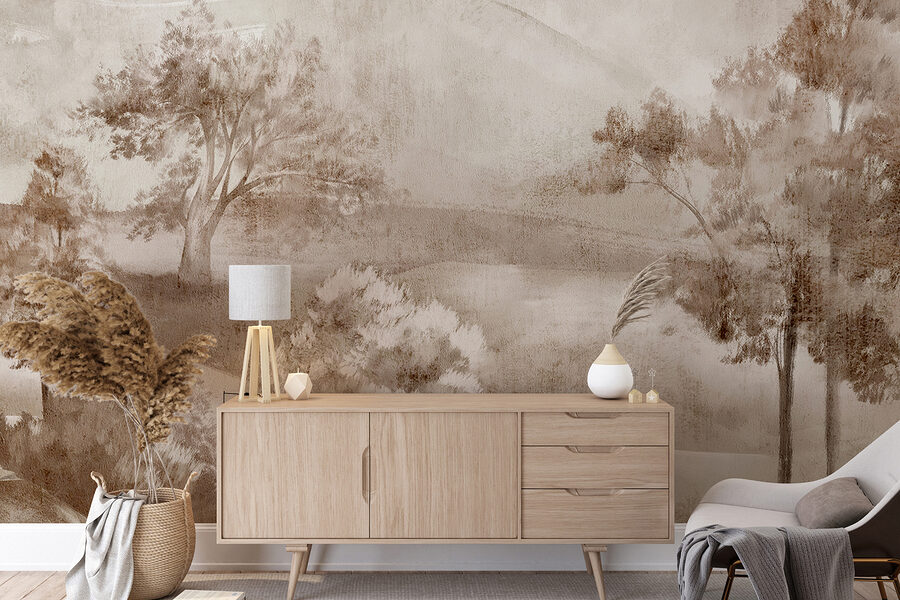 Γεια σας! Θέλατε ποτέ να φέρετε λίγη από τη μαγεία του ονειρικού τοπίου στο σαλόνι ή την κρεβατοκάμαρά σας; Ελέγξτε τις “τοιχογραφίες Τοπίο με δέντρα και θάμνους”. Πρόκειται για ένα όμορφο μείγμα απαλών χρωμάτων και γήινων τόνων, που κάνει κάθε χώρο να αισθάνεται λίγο πιο γαλήνιος. Σαν μια απαλή υδατογραφία, αυτή η τοιχογραφία αποτυπώνει μια πλούσια σκηνή με δέντρα και θάμνους, σχεδόν σαν να ατενίζετε ένα γαλήνιο λιβάδι.