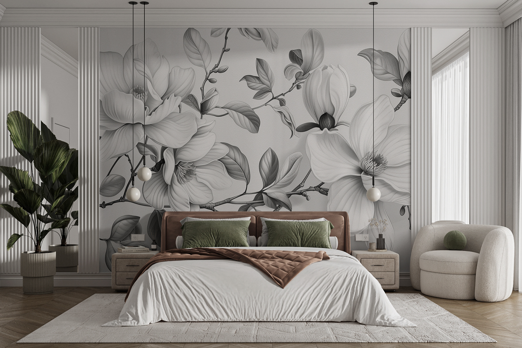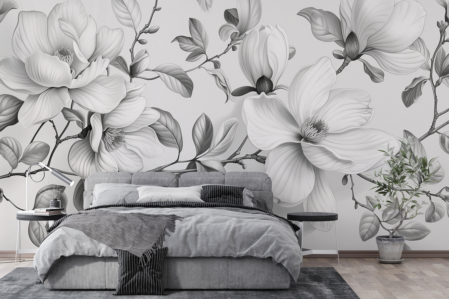 Μεταμορφώστε έναν βαρετό τοίχο σε έργο τέχνης με αυτή την κομψή μονόχρωμη φλοράλ τοιχογραφία. Φανταστείτε να μπαίνετε σε έναν γαλήνιο κήπο, όπου κάθε πέταλο ψιθυρίζει απαλά κομψότητα και γοητεία. Το περίπλοκο σχέδιο φέρνει μια ηρεμιστική ατμόσφαιρα, ιδανική για κάθε χώρο που χρειάζεται ένα απαλό άγγιγμα της φύσης. Φανταστείτε φίλους να συγκεντρώνονται, να θαυμάζουν αυτό το εκπληκτικό σκηνικό, ίσως και να χύνουν ένα ποτό από ενθουσιασμό – ουπς! Αλλά μην ανησυχείτε, όλα έχουν να κάνουν με την εμπειρία, σωστά; Αυτή η τοιχογραφία αποτυπώνει την ουσία της ηρεμίας, ενώ συνδυάζεται αβίαστα με οποιοδήποτε στυλ διακόσμησης. Φέρτε μια ανάσα φρέσκου αέρα στο σπίτι!