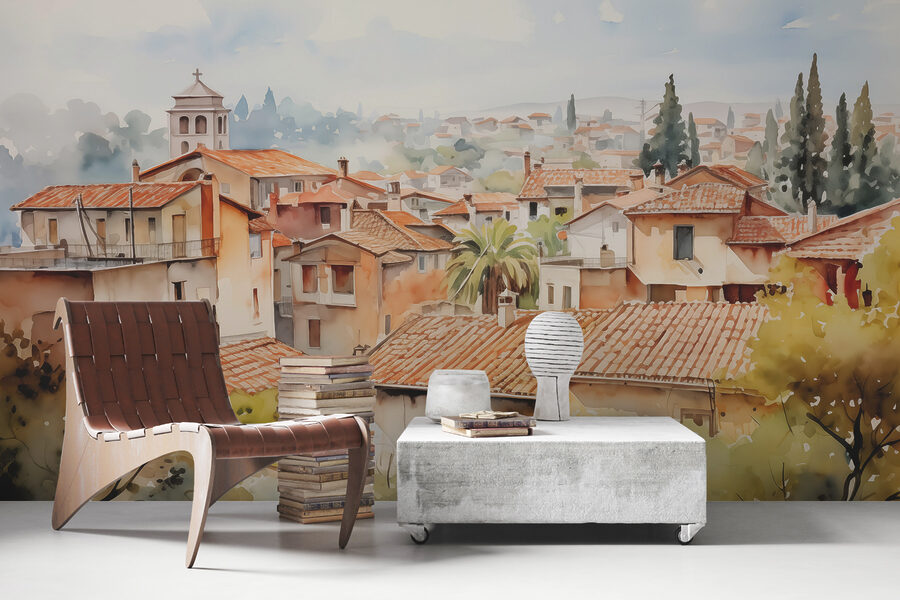 Φανταστείτε να ξυπνάτε κάθε πρωί με τη γοητευτική απλότητα των ηλιοκαμένων οροφών από τερακότα και του πλούσιου πρασίνου… ακριβώς στο σαλόνι σας. Το “Ταπετσαρίες w01440” είναι σαν μια καρτ ποστάλ από το αγαπημένο σας μεσογειακό ταξίδι – ιδανικό για να προσθέσετε μια πινελιά ζεστασιάς και νοσταλγίας. Αυτή η τοιχογραφία φέρνει τη φύση στο εσωτερικό και κάνει κάθε δωμάτιο να αισθάνεται άνετο και φιλόξενο. Το εφέ υδατογραφίας είναι απλά ονειρικό, δίνοντας αυτές τις αβίαστες, καλλιτεχνικές δονήσεις. Οι φίλοι που θα περάσουν από εδώ θα νιώσουν αμέσως σαν να έχουν μπει σε ένα χωριό με παραμύθια, με αυτή τη γοητευτική αίσθηση του παλιού κόσμου. Ιδανικό για όποιον αγαπά να συνδυάζει τη ρουστίκ γοητεία με μια πινελιά κομψότητας!