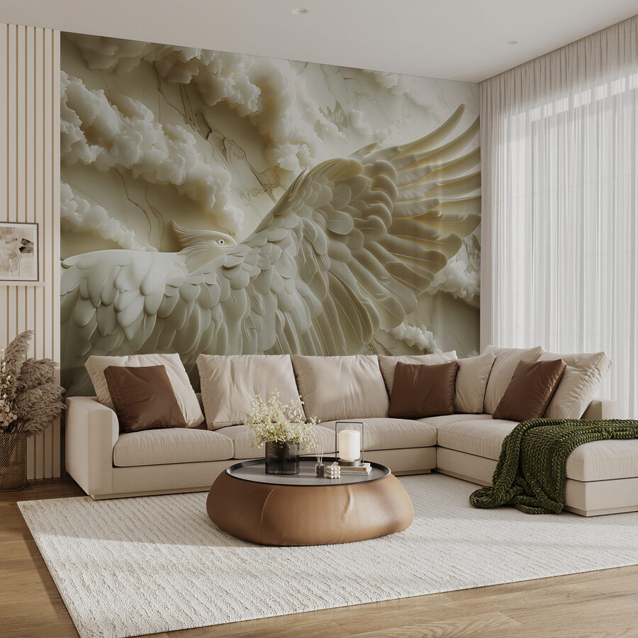 Μεταμορφώστε οποιοδήποτε δωμάτιο σε μια γαλήνια απόδραση με τις “Τοιχογραφίες Λευκό πουλί με απλωμένα φτερά”. Αυτό το εκπληκτικό έργο αποτυπώνει τη χάρη ενός πουλιού σε πτήση, που περιβάλλεται από απαλά, ρέοντα σύννεφα. Φανταστείτε απλώς να μπαίνετε στο χώρο σας και να νιώθετε αμέσως μια αίσθηση ηρεμίας, σαν να ατενίζετε έναν γαλήνιο ουρανό.