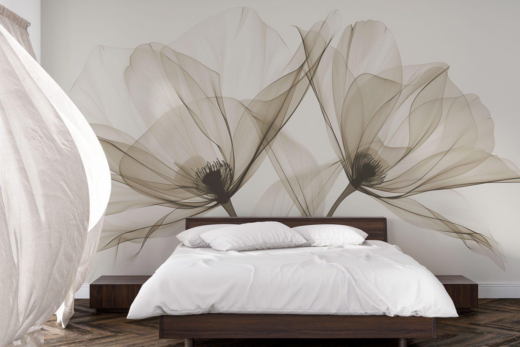 Μεταμορφώστε έναν απλό τοίχο σε μια γαλήνια όαση με αυτή την εκπληκτική τοιχογραφία με κομψά άνθη σε τόνους σέπια. Φανταστείτε να μπαίνετε σε έναν άνετο χώρο που ψιθυρίζει άνεση και εκλέπτυνση. Οι απαλές, ρέουσες γραμμές των λουλουδιών μοιάζουν να χορεύουν, προσκαλώντας σκέψεις για ανοιξιάτικες μέρες και ζεστό φως του ήλιου που φιλτράρεται μέσα από τα φύλλα. Είναι σαν να φέρνετε λίγη από τη φύση στους εσωτερικούς χώρους, χωρίς να χρειάζεται να ποτίζετε. Είτε πρόκειται για ένα σαλόνι, είτε για ένα υπνοδωμάτιο, είτε ακόμη και για μια ήσυχη γωνιά ανάγνωσης, αυτά τα απαλά άνθη δημιουργούν μια γαλήνια διάθεση που είναι ιδανική για να αναπαυθείτε με ένα καλό βιβλίο – ή απλώς να απολαύσετε την ομορφιά.