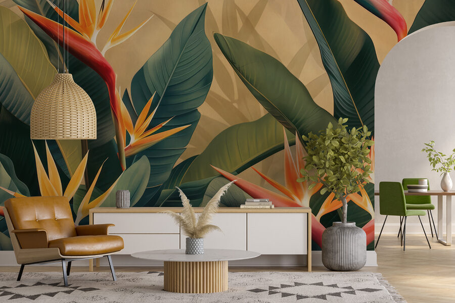 Μεταμορφώστε οποιοδήποτε δωμάτιο σε έναν τροπικό παράδεισο με αυτή την εκπληκτική τοιχογραφία τοίχου με ζωντανά φυτά Bird of Paradise. Τα πλούσια πράσινα και τα φλογερά πορτοκαλί χρώματα δημιουργούν ένα ζωντανό σκηνικό, ανεβάζοντας αμέσως τη διάθεση. Φανταστείτε να μπαίνετε στο σαλόνι σας και να αισθάνεστε σαν να βρίσκεστε σε μια ηλιόλουστη τροπική απόδραση. Είναι σαν να φέρνετε ένα κομμάτι της φύσης μέσα στο σπίτι σας – ιδανικό για τα ζεστά απογεύματα με ένα βιβλίο ή ίσως ένα θρασύ κοκτέιλ στο χέρι. Επιπλέον, είναι ένα εξαιρετικό στοιχείο για συζήτηση. Οι καλεσμένοι θα ρωτούν από πού προέρχεται αυτή η υπέροχη τοιχογραφία και εσείς μπορείτε να χαμογελάσετε και να πείτε ότι είναι το μυστικό της κομψής απόδρασης!