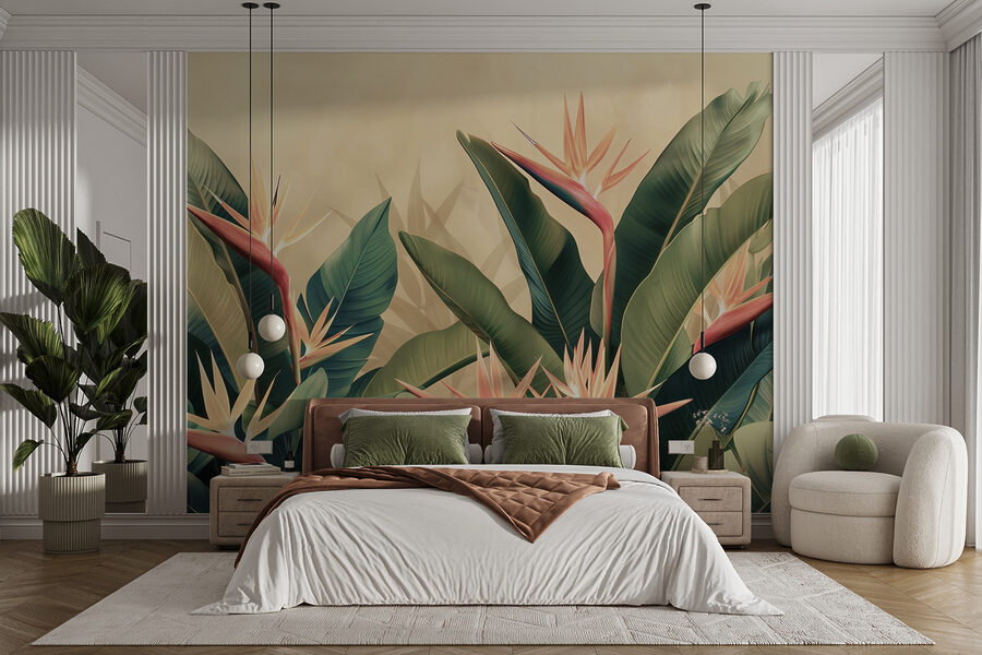 Φανταστείτε να μπαίνετε στο σαλόνι σας και να αισθάνεστε αμέσως σαν να έχετε βρεθεί σε έναν τροπικό παράδεισο – δεν χρειάζονται αεροπορικά εισιτήρια! Με τις “Τοιχογραφίες w01484v1”, αυτά τα καταπράσινα φύλλα και τα ζωηρά λουλούδια του παραδείσιου πουλιού πρακτικά ξεπηδούν από τον τοίχο. Δεν είναι απλώς διακόσμηση, είναι μια απόδραση. Ιδανικό για όποιον ονειρεύεται μια απόδραση στο νησί όταν είναι βουτηγμένος στα emails της δουλειάς. Τα φύλλα είναι τόσο ζωηρά λεπτομερή που θα ορκιζόσασταν ότι ακούτε το θρόισμα του αεριού… και ποιος ξέρει, ίσως να σας έρθει και η επιθυμία για μια πίνια κολάντα. Είναι σαν να φέρνετε ένα κομμάτι της ομορφιάς της φύσης στο σπίτι – χωρίς τα έντομα! Το φόντο αυτής της τοιχογραφίας έχει βάθος που δημιουργεί ένα σχεδόν τρισδιάστατο εφέ, δίνοντας στο χώρο σας μια αναζωογονητική έκρηξη ζωής. Πιστέψτε με, θα κάνει τα πρωινά σας να αισθάνονται λίγο πιο φωτεινά και τα βράδια σας πιο χαλαρά.