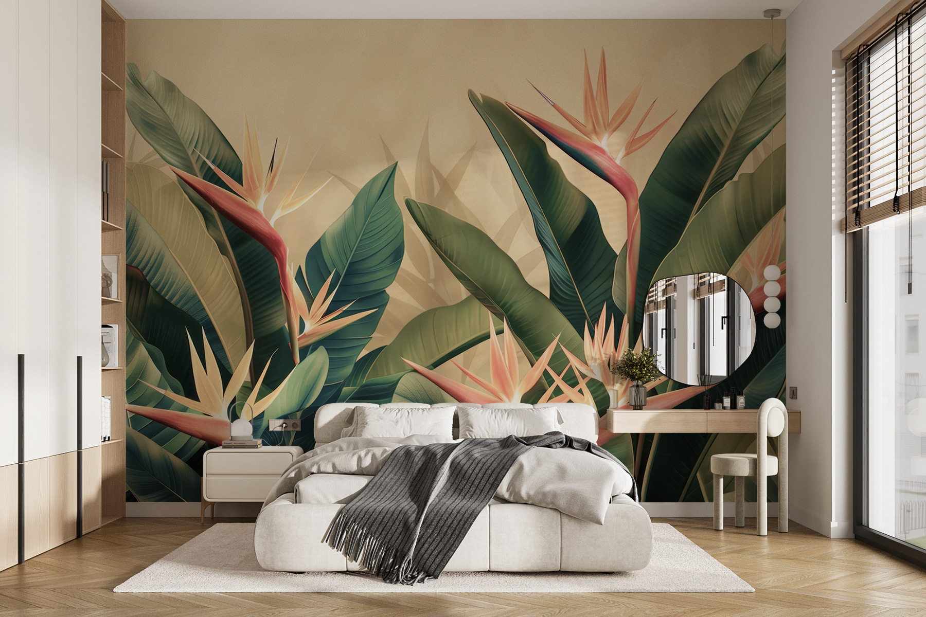 Φανταστείτε να μπαίνετε στο σαλόνι σας και να αισθάνεστε αμέσως σαν να έχετε βρεθεί σε έναν τροπικό παράδεισο – δεν χρειάζονται αεροπορικά εισιτήρια! Με τις “Τοιχογραφίες w01484v1”, αυτά τα καταπράσινα φύλλα και τα ζωηρά λουλούδια του παραδείσιου πουλιού πρακτικά ξεπηδούν από τον τοίχο. Δεν είναι απλώς διακόσμηση, είναι μια απόδραση. Ιδανικό για όποιον ονειρεύεται μια απόδραση στο νησί όταν είναι βουτηγμένος στα emails της δουλειάς. Τα φύλλα είναι τόσο ζωηρά λεπτομερή που θα ορκιζόσασταν ότι ακούτε το θρόισμα του αεριού… και ποιος ξέρει, ίσως να σας έρθει και η επιθυμία για μια πίνια κολάντα. Είναι σαν να φέρνετε ένα κομμάτι της ομορφιάς της φύσης στο σπίτι – χωρίς τα έντομα! Το φόντο αυτής της τοιχογραφίας έχει βάθος που δημιουργεί ένα σχεδόν τρισδιάστατο εφέ, δίνοντας στο χώρο σας μια αναζωογονητική έκρηξη ζωής. Πιστέψτε με, θα κάνει τα πρωινά σας να αισθάνονται λίγο πιο φωτεινά και τα βράδια σας πιο χαλαρά.