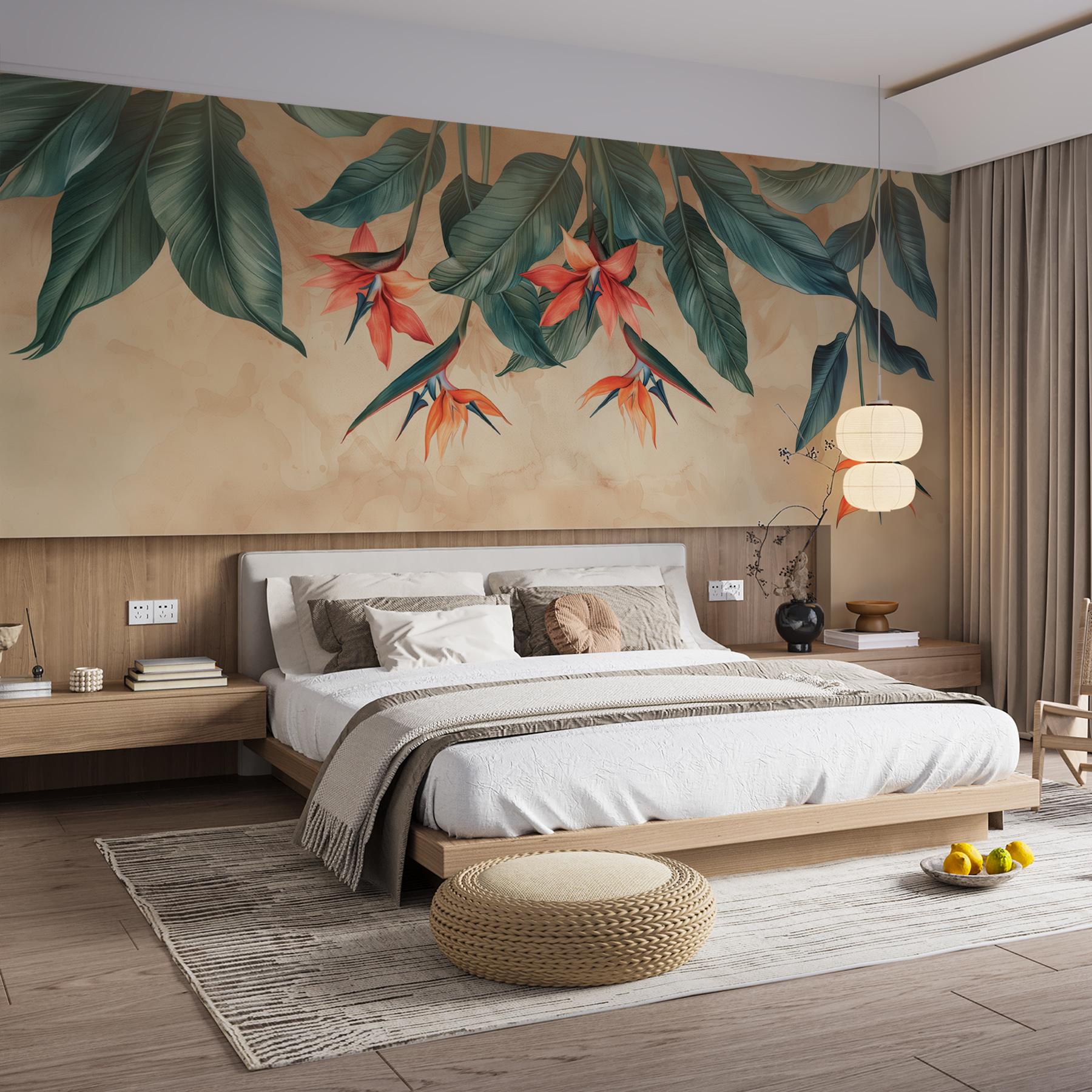 Σκέφτεστε να προσθέσετε κάποιο σοβαρό wow-factor σε ένα δωμάτιο; Δείτε αυτή την εκπληκτική τοιχογραφία, “Ταπετσαρίες w01485”. Έχει αυτή την ονειρική τροπική ατμόσφαιρα με τα καταπράσινα φύλλα και τα φωτεινά λουλούδια που σε κάνουν να νιώθεις σαν να έχεις μόλις μπει σε μια ζεστή απόδραση στη ζούγκλα. Δεν μπορείτε να φανταστείτε πώς αυτό θα άλλαζε εντελώς έναν χώρο – προσθέτοντας λίγη φύση, έναν υπαινιγμό περιπέτειας; Ιδανικό για οποιονδήποτε τοίχο που θα χρειαζόταν μια δόση ζωής και χρώματος. Είτε πρόκειται για έναν χαρακτηριστικό τοίχο στο σαλόνι είτε για ένα καταπράσινο σκηνικό σε ένα υπνοδωμάτιο, αυτή η τοιχογραφία μοιάζει με ένα μικρό κομμάτι του παραδείσου μέσα στο σπίτι σας. Και η εμφάνιση του ξύλου; Προσθέτει μια ρουστίκ, ζεστή αίσθηση που είναι απλά φιλόξενη. Είναι κάτι περισσότερο από μια απλή επένδυση τοίχου… είναι μια ολόκληρη διάθεση.