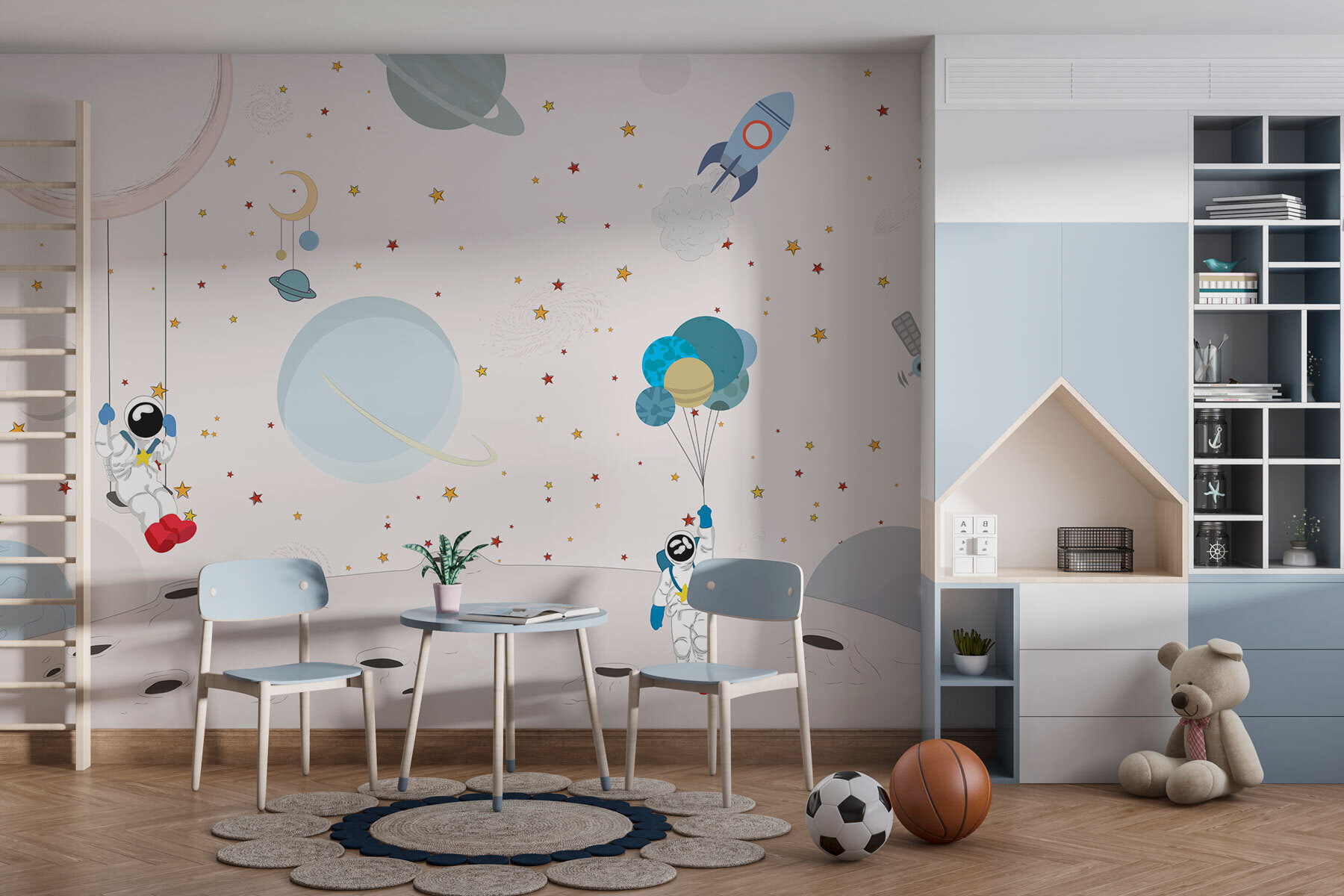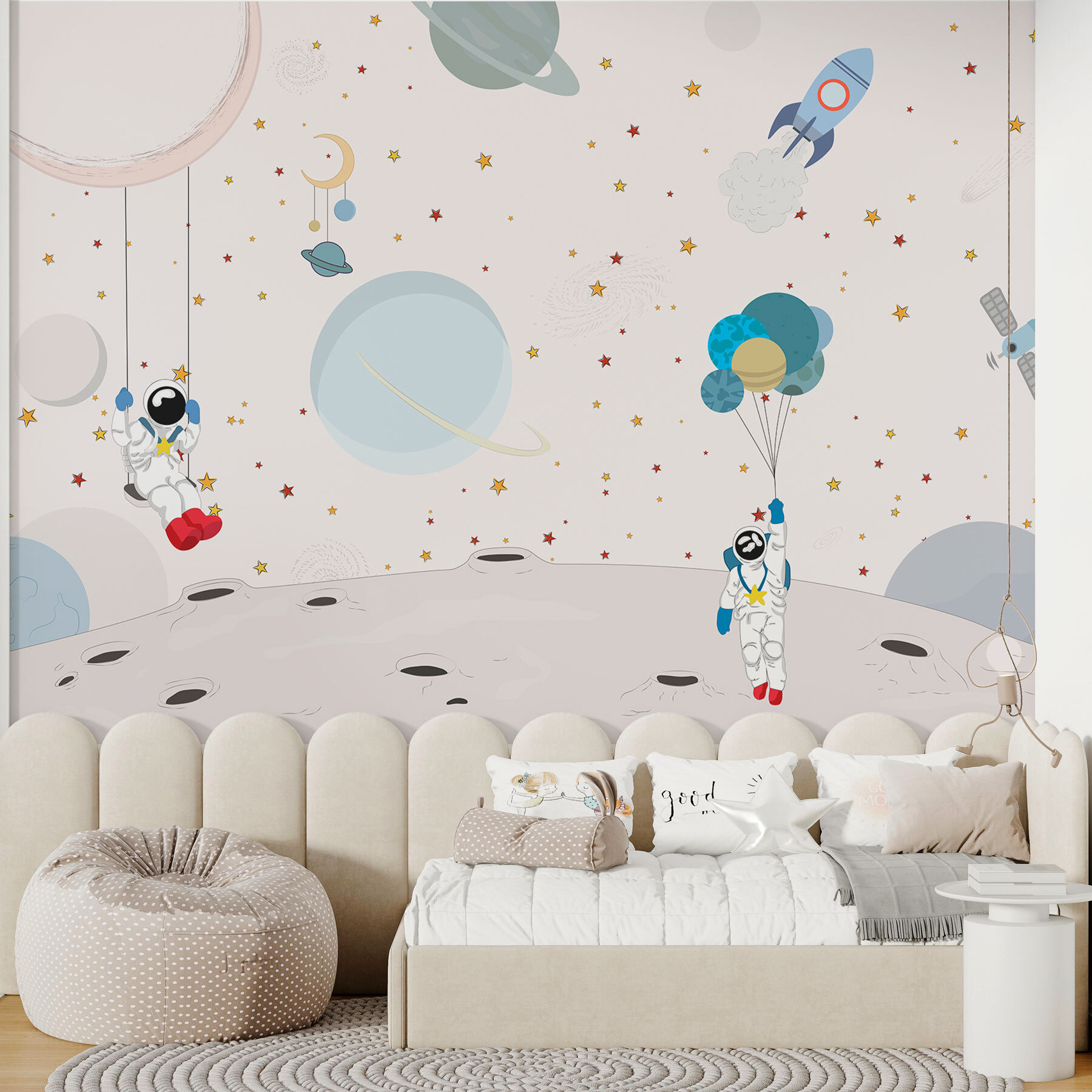 Ονειρευτείτε ένα μικρό όνειρο με το “Ταπετσαρίες w01489”! Σκεφτήκατε ποτέ να έχετε έναν γαλαξία στο σαλόνι σας; Λοιπόν, εδώ είναι η ευκαιρία σας. Αυτή η τοιχογραφία είναι ένα ιδιόρρυθμο μείγμα από αστέρια, πλανήτες και τους αξιολάτρευτους μικρούς μας αστροναύτες που περνούν την καλύτερη στιγμή της ζωής τους στο φεγγάρι. Ιδανικό για όποιον έχει πάντα το κεφάλι του στα σύννεφα -ή στα αστέρια! Φανταστείτε να αράζετε κάτω από έναν ονειρικό νυχτερινό ουρανό πίνοντας τσάι ή διαβάζοντας το αγαπημένο σας βιβλίο. Είναι σαν να προσκαλείτε ένα μικρό κομμάτι του σύμπαντος στο χώρο σας. Καθαρή μαγεία, έτσι δεν είναι; 🌌✨