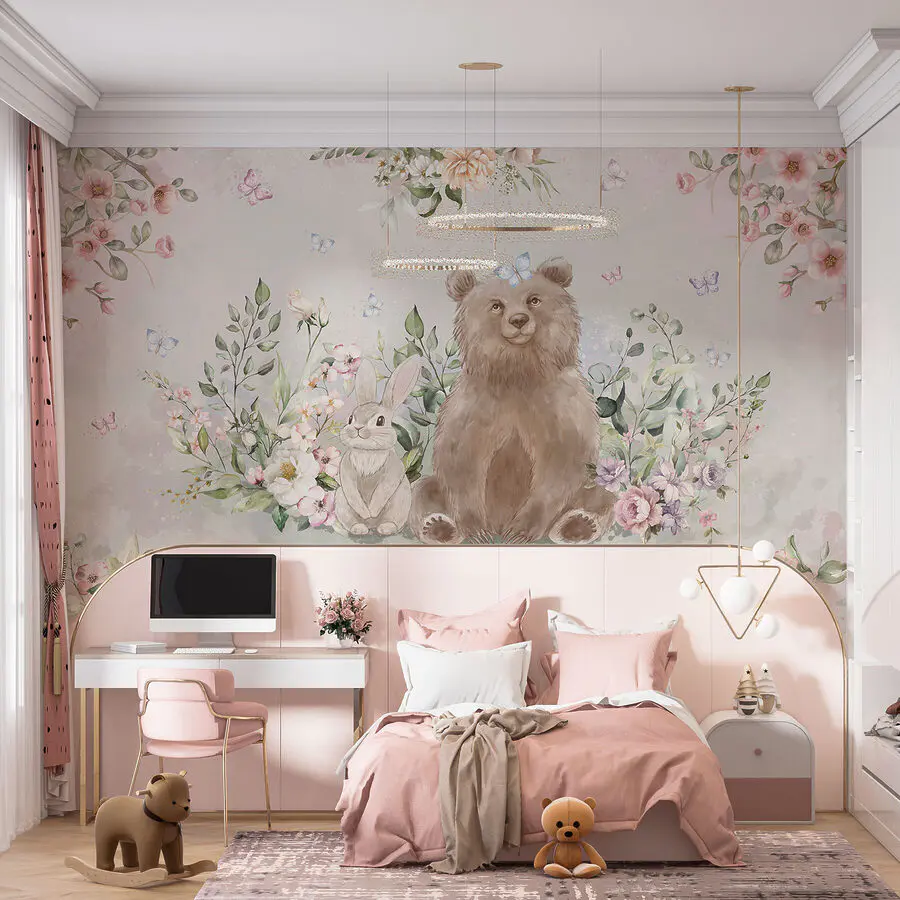 Φανταστείτε να μπαίνετε σε ένα δωμάτιο και να σας υποδέχεται θερμά ένα χαρούμενο αρκουδάκι και ένα περίεργο κουνελάκι, περιτριγυρισμένο από ευφάνταστα λουλούδια και πεταλούδες. Αυτή είναι η μαγεία του “Ταπετσαρίες w01491” – φωτίζει αμέσως κάθε χώρο! Ιδανική για τους λάτρεις των ζώων ή για όποιον θέλει ένα άγγιγμα φύσης σε εσωτερικούς χώρους, αυτή η τοιχογραφία δεν διακοσμεί απλώς ένα δωμάτιο, αλλά αφηγείται μια ιστορία. Φανταστείτε τον πρωινό καφέ με αυτό το απαλό, παστέλ φόντο… ευτυχισμένες στιγμές ανάμεσα σε άνθη και γοητευτικά πλάσματα – είναι σαν να μπαίνετε σε ένα απαλό παραμύθι του δάσους. Εγκαταστήστε το σε ένα παιδικό δωμάτιο, ένα σαλόνι ή ακόμα και στο χώρο δημιουργικής εργασίας σας για μια καθημερινή δόση χαράς και ηρεμίας!