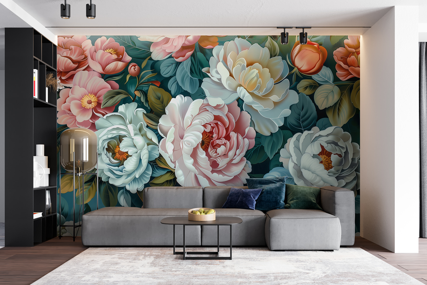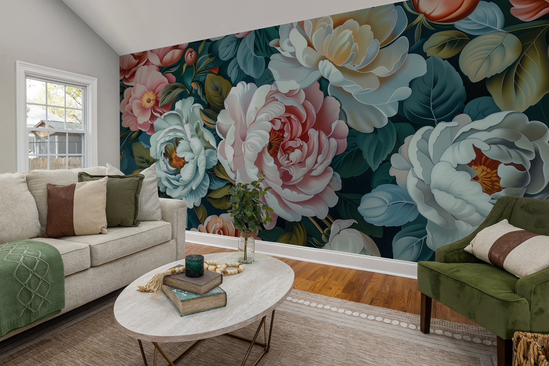 Μια τέτοια τοιχογραφία μεταμορφώνει κάθε χώρο. Θα μπορούσε να είναι η προσωπική σας απόδραση, μετατρέποντας ένα θλιβερό δωμάτιο σε έναν ζωντανό κήπο. Φανταστείτε τον πρωινό καφέ με αυτά τα λουλούδια ως φόντο – είναι αρκετό για να φωτίσει κάθε μέρα. Το μείγμα βαθιών, πλούσιων χρωμάτων και περίπλοκων λεπτομερειών το κάνει να ξεχωρίζει.