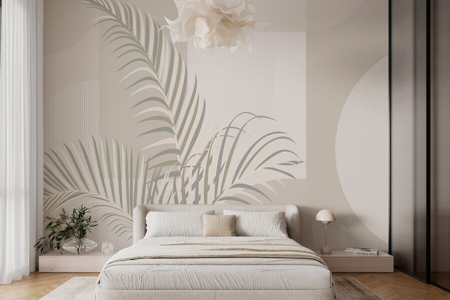 Ιδανικό για κάθε χώρο που χρειάζεται λίγη αναζωογόνηση – καθιστικό, υπνοδωμάτιο ή ακόμη και γραφείο. Αυτά τα τολμηρά φύλλα φοίνικα σε ένα μοντέρνο, μινιμαλιστικό φόντο δεν είναι μόνο μοντέρνα αλλά και καταπραϋντικά. Μπορείτε να φανταστείτε να φιλοξενείτε φίλους για δείπνο και να βλέπετε τα σαγόνια τους να πέφτουν; “Πού βρήκατε αυτή την καταπληκτική τοιχογραφία;” θα σας ρωτήσουν. Ναι, είναι αυτό το είδος της εντυπωσιακής τοιχογραφίας.