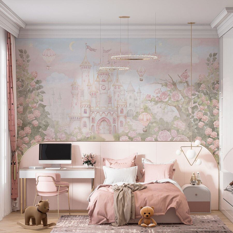 Φανταστείτε να μπαίνετε σε ένα δωμάτιο και να μεταφέρεστε σε ένα ονειρικό κάστρο που περιβάλλεται από καταπράσινα τριαντάφυλλα και ιδιόρρυθμα αερόστατα που αιωρούνται. Αυτή η τοιχογραφία τοίχου δεν είναι απλώς διακόσμηση – είναι μια ιστορία. Ιδανική για όσους αγαπούν μια πινελιά μαγείας στο χώρο τους, είναι σαν να ανοίγετε ένα παραμυθένιο βιβλίο κάθε φορά που μπαίνετε μέσα. Νιώστε το απαλό αεράκι καθώς τα μπαλόνια παρασύρονται μέσα από τον παστέλ ουρανό και αφήστε το απαλό χρώμα των λουλουδιών να σας μεταφέρει σε ένα μαγικό δάσος. Είναι το είδος της σκηνής που κάνει μια βροχερή μέρα ζεστή, πυροδοτώντας τη φαντασία και τις γλυκές ονειροπολήσεις.