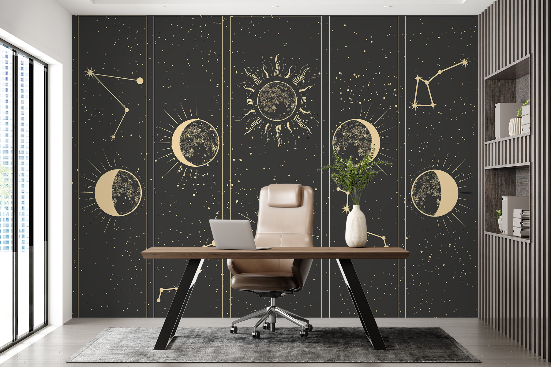 Φανταστείτε να μπαίνετε σε ένα δωμάτιο που μοιάζει σαν να αιωρείστε μέσα στο σύμπαν! Αυτή η τοιχογραφία “Σελήνη και αστέρια” δίνει στο χώρο σας μια ονειρική ατμόσφαιρα, ιδανική για τους αστρονόμους και τους λάτρεις του φεγγαριού. Είναι σαν να έχετε ένα κομμάτι του νυχτερινού ουρανού μέσα στο σπίτι σας – χωρίς τους ψυχρούς ανέμους. Οι ιδιόρρυθμοι αστερισμοί χορεύουν στον τοίχο σας, εξάπτοντας τη φαντασία. Είτε ξαπλώνετε στον καναπέ αναλογιζόμενοι τα μυστήρια της ζωής, είτε απλά χρειάζεστε λίγη κοσμική ηρεμία μετά από μια ταραχώδη μέρα, αυτή η τοιχογραφία είναι το εισιτήριό σας για την αστρική γαλήνη. Απολαύστε τη μαγεία!