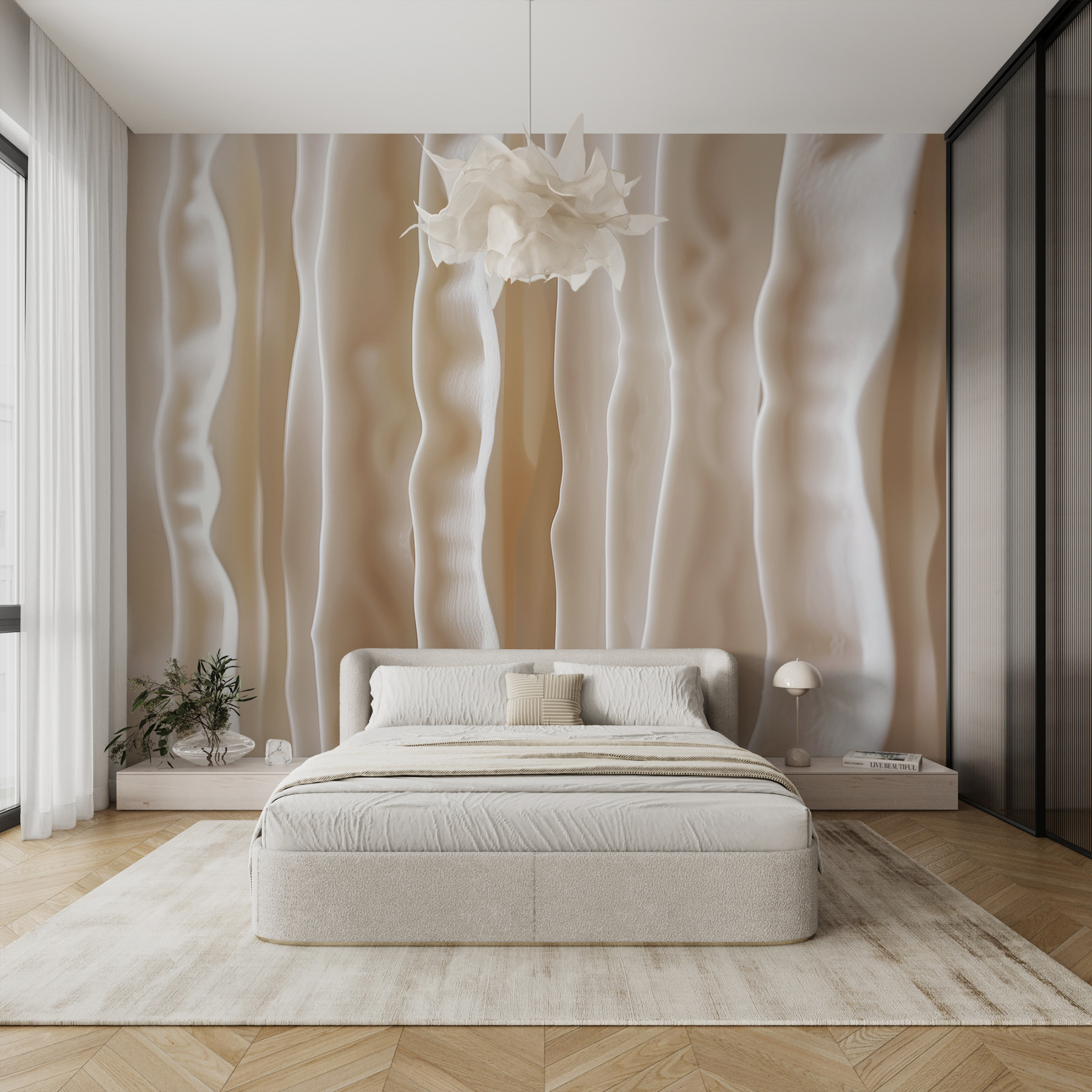 Ταπετσαρίες Κρεμώδη κύματα με ρέουσα υφή. (Κωδικός προϊόντος: w01541)