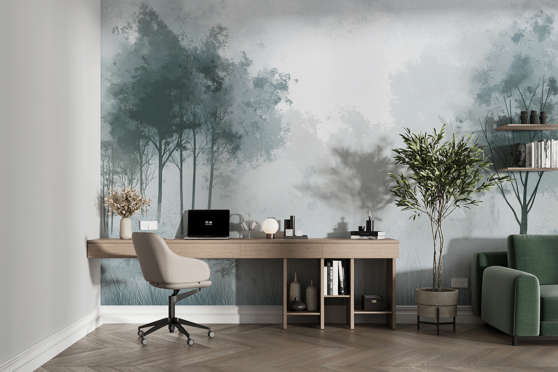 Φανταστείτε να ξυπνάτε κάθε μέρα με ομιχλώδη πρωινά – χωρίς να χρειάζεστε ποτέ ομπρέλα. Αυτή η τοιχογραφία “Ομίχλη με δάσος και δέντρα” τυλίγει το δωμάτιό σας με ηρεμία και ένα άγγιγμα μυστηρίου, σαν να μπαίνετε σε μια ονειρική σκηνή από ταινία με δάσος. Είναι ιδανική για όταν χρειάζεστε μια ανάσα από την καθημερινή φασαρία. Ίσως μάλιστα αρχίσετε να περιμένετε τα πλάσματα του δάσους να πεταχτούν έξω και να σας χαιρετήσουν! Μια απαλή ατμόσφαιρα και μια ειρηνική ατμόσφαιρα που κάνει ακόμα και το πιο πολυάσχολο σπίτι να μοιάζει με μια γαλήνια απόδραση.