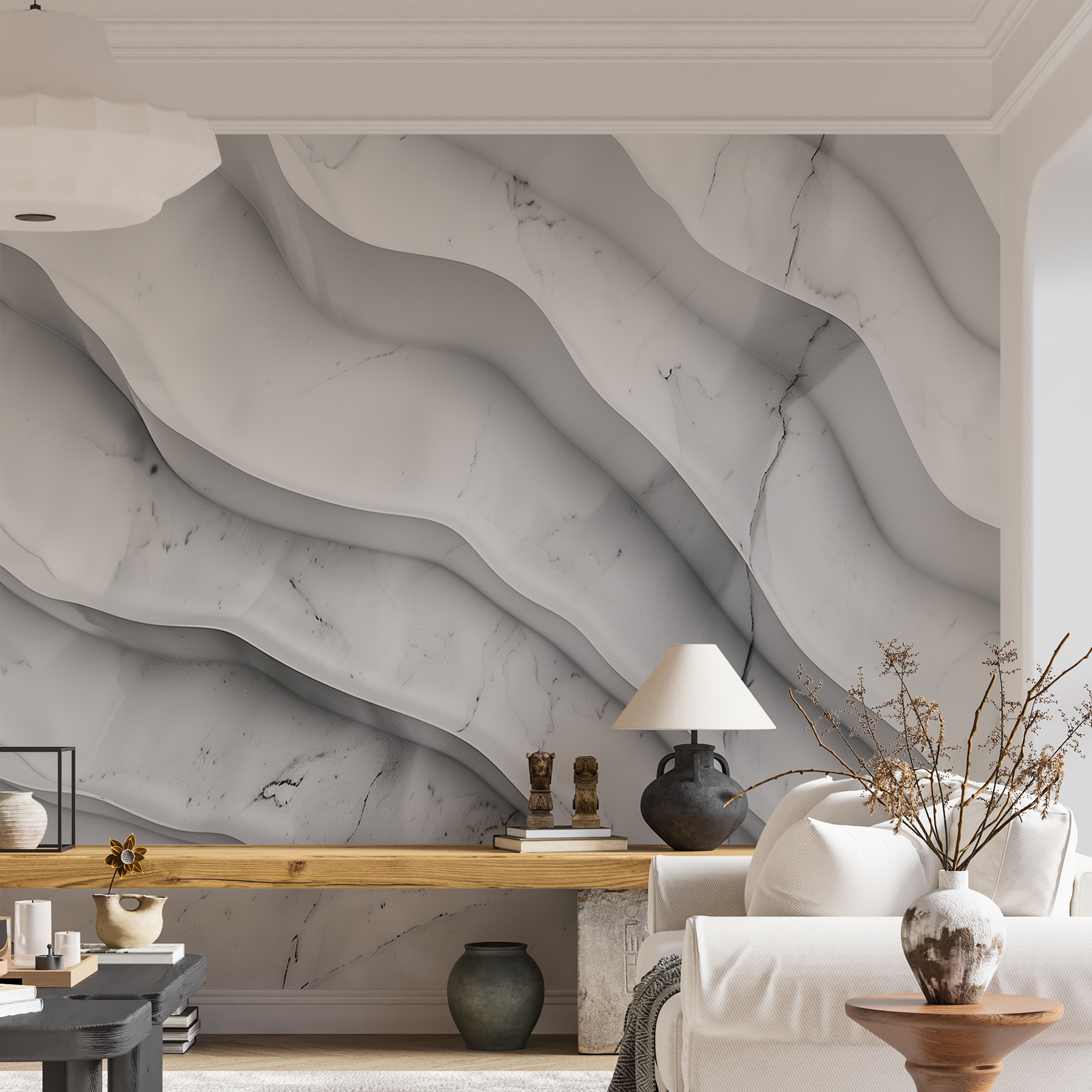 Φανταστείτε να μπαίνετε σε ένα δωμάτιο και να σας υποδέχεται η ηρεμιστική ροή μιας λευκής μαρμάρινης επιφάνειας με κυματιστές γραμμές. Είναι σαν να έχετε μια μέρα σπα για τους τοίχους σας! Αυτή η τοιχογραφία έχει αυτή την κομψή, εκλεπτυσμένη ατμόσφαιρα, αλλά με ένα twist – αυτές οι κυματιστές γραμμές προσθέτουν ακριβώς τη σωστή ποσότητα παιχνιδιάρικης ενέργειας. Ιδανική για μια ζεστή γωνιά ή έναν κομψό χώρο γραφείου. Φανταστείτε να πίνετε καφέ, να αισθάνεστε φανταχτερή, αλλά και εκπληκτικά χαλαρή. Είναι ο δικός σας χώρος, αναβαθμισμένος με λίγη μαρμάρινη μαγεία, που μετατρέπει τις συνηθισμένες μέρες σε εξαιρετικές. Ποιος ήξερε ότι ένας τοίχος μπορεί να κάνει τόσα πολλά;
