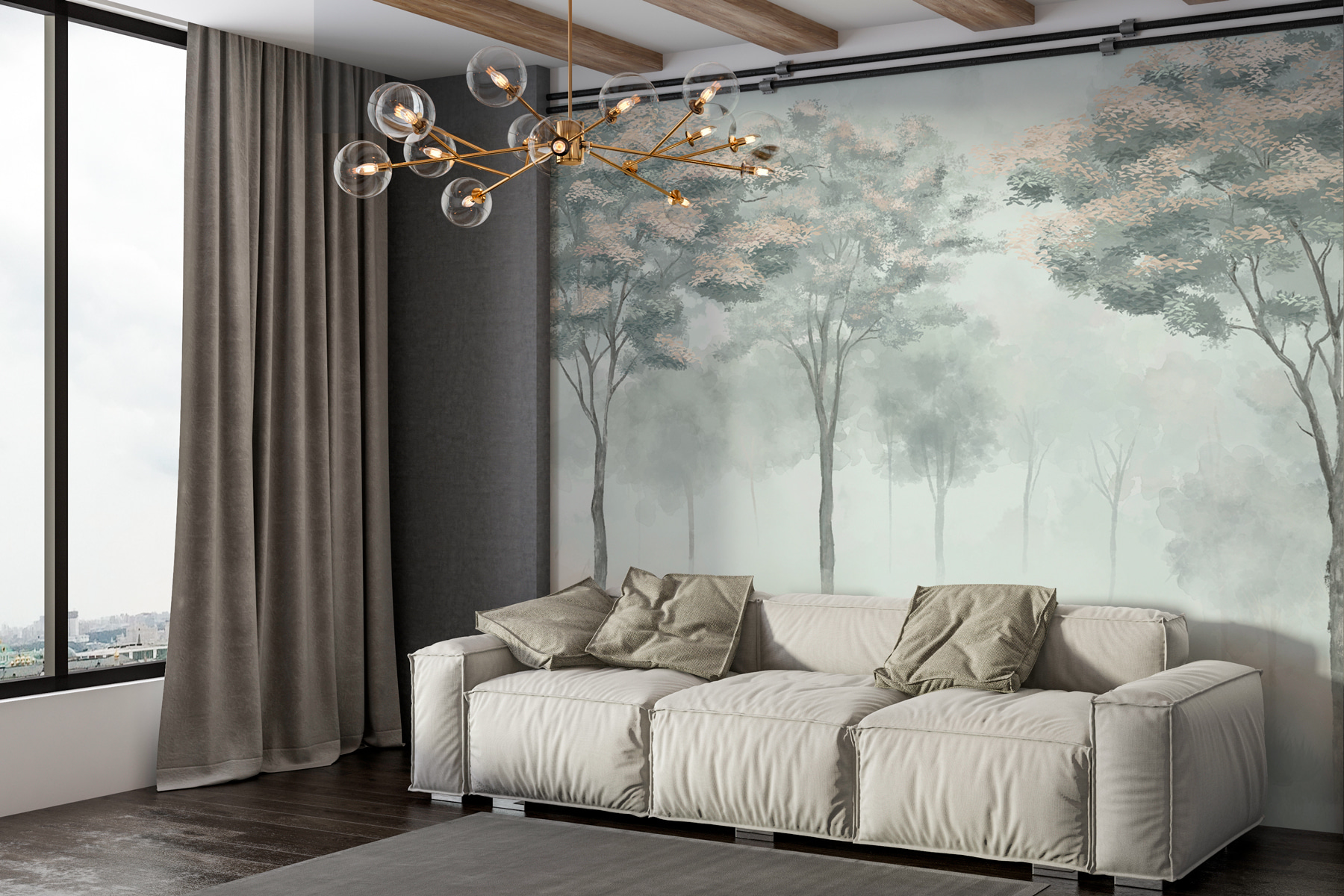 Φανταστείτε να μπαίνετε σε ένα δωμάτιο και ξαφνικά να βρίσκεστε σε ένα μαγικό δάσος όπου τα δέντρα στέκονται και ψιθυρίζουν μυστικά στην ομίχλη. Κάπως έτσι μοιάζει αυτή η τοιχογραφία – γαλήνια, μυστηριώδης και λίγο γοητευτική. Ιδανική για τους λάτρεις της φύσης ή για οποιονδήποτε χρειάζεται μια ήρεμη γωνιά στην πολύβουη ζωή του. Είναι σαν μια αγκαλιά για τους τοίχους σας! Οι φίλοι μπορεί να σας επισκεφθούν μόνο και μόνο για να απολαύσουν την ηρεμία. Και ξέρετε κάτι; Είναι κάτι περισσότερο από ένα απλό σκηνικό – είναι μια ολόκληρη ατμόσφαιρα. Σοβαρά, ποιος δεν θα ήθελε λίγο θαύμα στην ημέρα του;