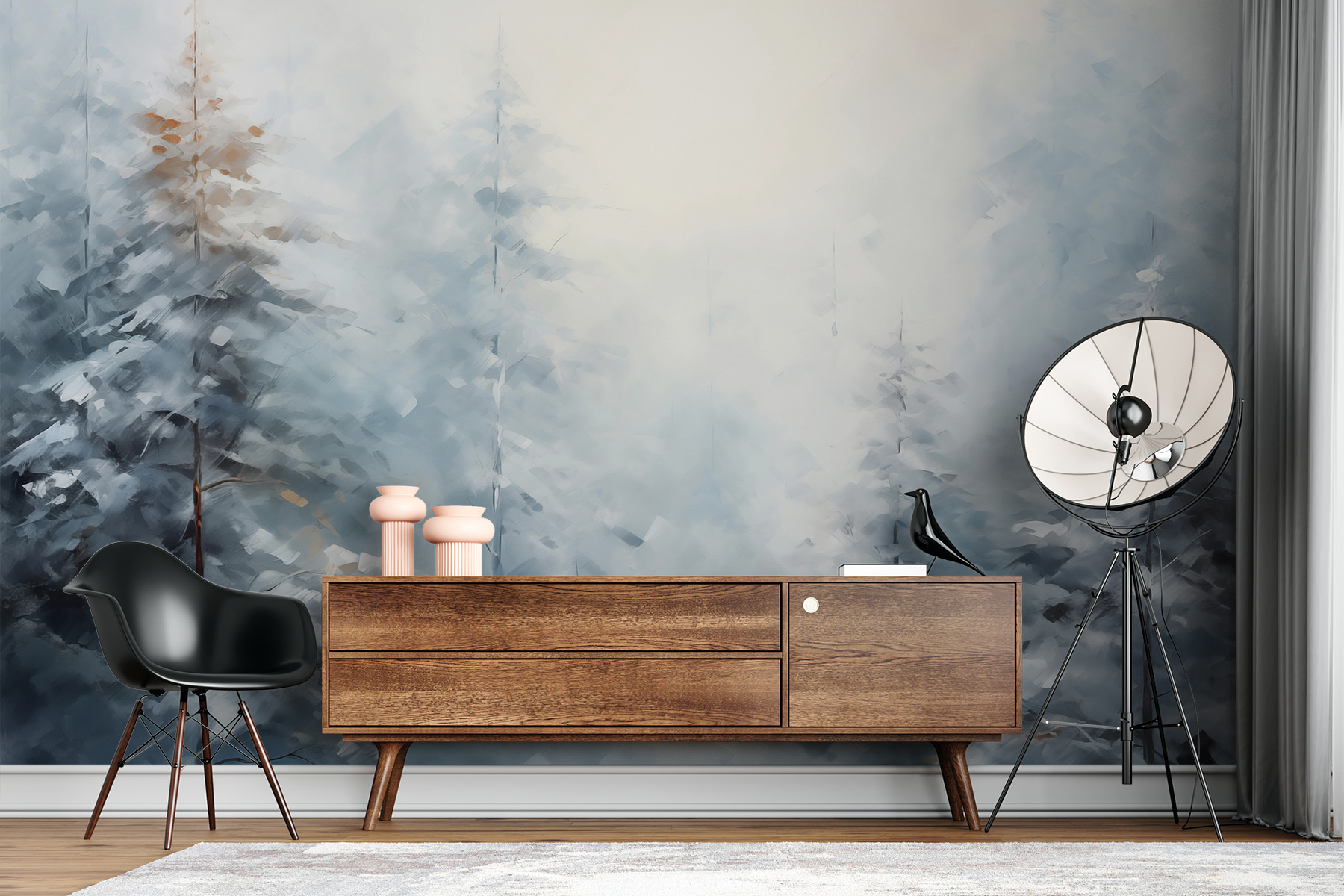 Φανταστείτε να μπαίνετε σε ένα δωμάτιο και να αισθάνεστε σαν να έχετε μεταφερθεί σε μια γαλήνια χειμερινή χώρα των θαυμάτων. Αυτή η τοιχογραφία τοίχου, με την ονειρική απεικόνιση χιονισμένων δέντρων, φέρνει αυτή τη μαγική ατμόσφαιρα του δάσους στο σπίτι σας. Φανταστείτε να πίνετε ζεστό κακάο καθώς την κοιτάτε, νιώθοντας μια απαλή ψύχρα στον αέρα – ακόμα κι αν είναι κατακαλόκαιρο. Ιδανικό για τους λάτρεις της φύσης και για όσους χρειάζονται λίγη ησυχία στη χαοτική ζωή τους. Είναι σαν μια αγκαλιά από τη φύση, χωρίς τα κρυοπαγήματα. Ζεστό, δροσερό και υπέροχα ηρεμιστικό!