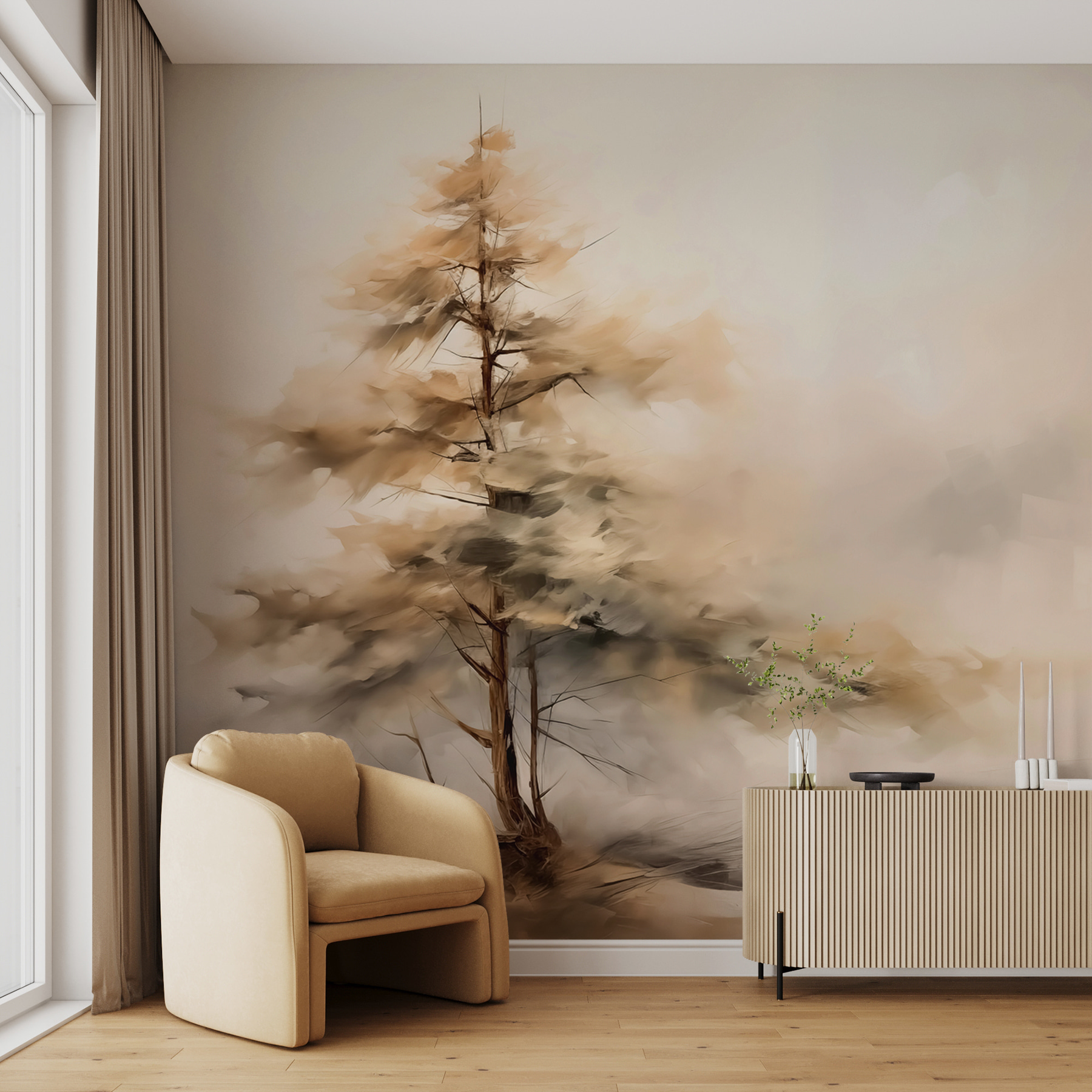 Μεταμορφώστε οποιοδήποτε δωμάτιο σε ένα ηρεμιστικό καταφύγιο με το “Tree in the Fog”. Αυτή η εκπληκτική τοιχογραφία αποτυπώνει τη γαλήνια ομορφιά της φύσης, όπου ένα μοναχικό δέντρο αναδύεται απαλά μέσα από την ομίχλη. Είναι σαν να μπαίνετε σε ένα ονειρικό τοπίο, ιδανικό για εκείνες τις στιγμές που απλά θέλετε να αναπνεύσετε και να χαλαρώσετε. Φανταστείτε να πίνετε τον καφέ σας ενώ κοιτάζετε αυτό το έργο τέχνης, αφήνοντας τις απαλές αποχρώσεις να σας εμπνεύσουν ηρεμία. Είναι σαν να έχετε μια ζεστή γωνιά ενός γαλήνιου δάσους μέσα στο σπίτι σας. Ιδανικό για υπνοδωμάτιο, σαλόνι ή οποιοδήποτε σημείο που αποζητά ένα άγγιγμα από τη μαγεία της φύσης. Προχωρήστε λοιπόν, αφήστε αυτή την τοιχογραφία να λειτουργήσει με τη γοητεία της!