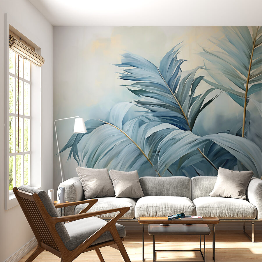 Φανταστείτε να ξυπνάτε κάθε πρωί με τους “Ψίθυρους των Γαλάζιων Φοίνικων” – είναι σαν να μπαίνετε σε μια γαλήνια ζούγκλα, ακριβώς στο σαλόνι σας. Τα ηρεμιστικά μπλε και πράσινα χρώματα είναι ιδανικά για να δημιουργήσετε μια γωνιά ζεν, όπου μπορείτε να πιείτε τον πρωινό σας καφέ ή να χαλαρώσετε μετά από μια κουραστική μέρα. Ίσως μάλιστα αρχίσετε να πιστεύετε ότι ο χώρος σας έχει τη δική του εξωτική ατμόσφαιρα καταφυγίου. Τα πουλιά θα ζηλέψουν αυτά τα φύλλα! Επιπλέον, είναι τόσο ευπροσάρμοστο – ταιριάζει σχεδόν με κάθε στυλ διακόσμησης. Μετατρέψτε έναν απλό τοίχο σε μια ήπια απόδραση τυλιγμένη στις πιο απαλές αποχρώσεις της φύσης.