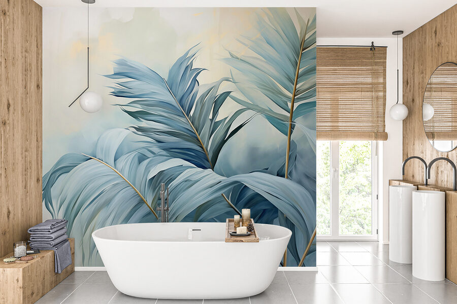 Φανταστείτε να ξυπνάτε κάθε πρωί με τους “Ψίθυρους των Γαλάζιων Φοίνικων” – είναι σαν να μπαίνετε σε μια γαλήνια ζούγκλα, ακριβώς στο σαλόνι σας. Τα ηρεμιστικά μπλε και πράσινα χρώματα είναι ιδανικά για να δημιουργήσετε μια γωνιά ζεν, όπου μπορείτε να πιείτε τον πρωινό σας καφέ ή να χαλαρώσετε μετά από μια κουραστική μέρα. Ίσως μάλιστα αρχίσετε να πιστεύετε ότι ο χώρος σας έχει τη δική του εξωτική ατμόσφαιρα καταφυγίου. Τα πουλιά θα ζηλέψουν αυτά τα φύλλα! Επιπλέον, είναι τόσο ευπροσάρμοστο – ταιριάζει σχεδόν με κάθε στυλ διακόσμησης. Μετατρέψτε έναν απλό τοίχο σε μια ήπια απόδραση τυλιγμένη στις πιο απαλές αποχρώσεις της φύσης.