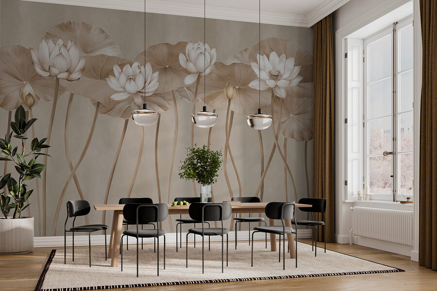 Μεταμορφώστε έναν απλό τοίχο σε μια γαλήνια απόδραση με την τοιχογραφία Ethereal Lotus σε μονόχρωμες αποχρώσεις. Φανταστείτε να μπαίνετε σε έναν ήσυχο κήπο, όπου τα ντελικάτα λουλούδια λωτού λικνίζονται απαλά στους ψηλούς μίσχους τους. Αυτή η τοιχογραφία φέρνει ένα άγγιγμα της φύσης στους εσωτερικούς χώρους, δημιουργώντας μια ηρεμιστική ατμόσφαιρα που ψιθυρίζει: “Πάρε μια ανάσα, είσαι σπίτι”. Ιδανικό για κάθε χώρο που χρειάζεται λίγη γοητεία, μπορεί να πυροδοτήσει συζητήσεις ή απλά να προσφέρει ένα ειρηνικό σκηνικό ενώ πίνετε τον πρωινό καφέ σας. Είναι σαν να έχετε μια μίνι όαση ακριβώς εκεί που τη χρειάζεστε. Επιπλέον, ποιος δεν αγαπάει μια καλή στιγμή με λουλούδια λωτού;