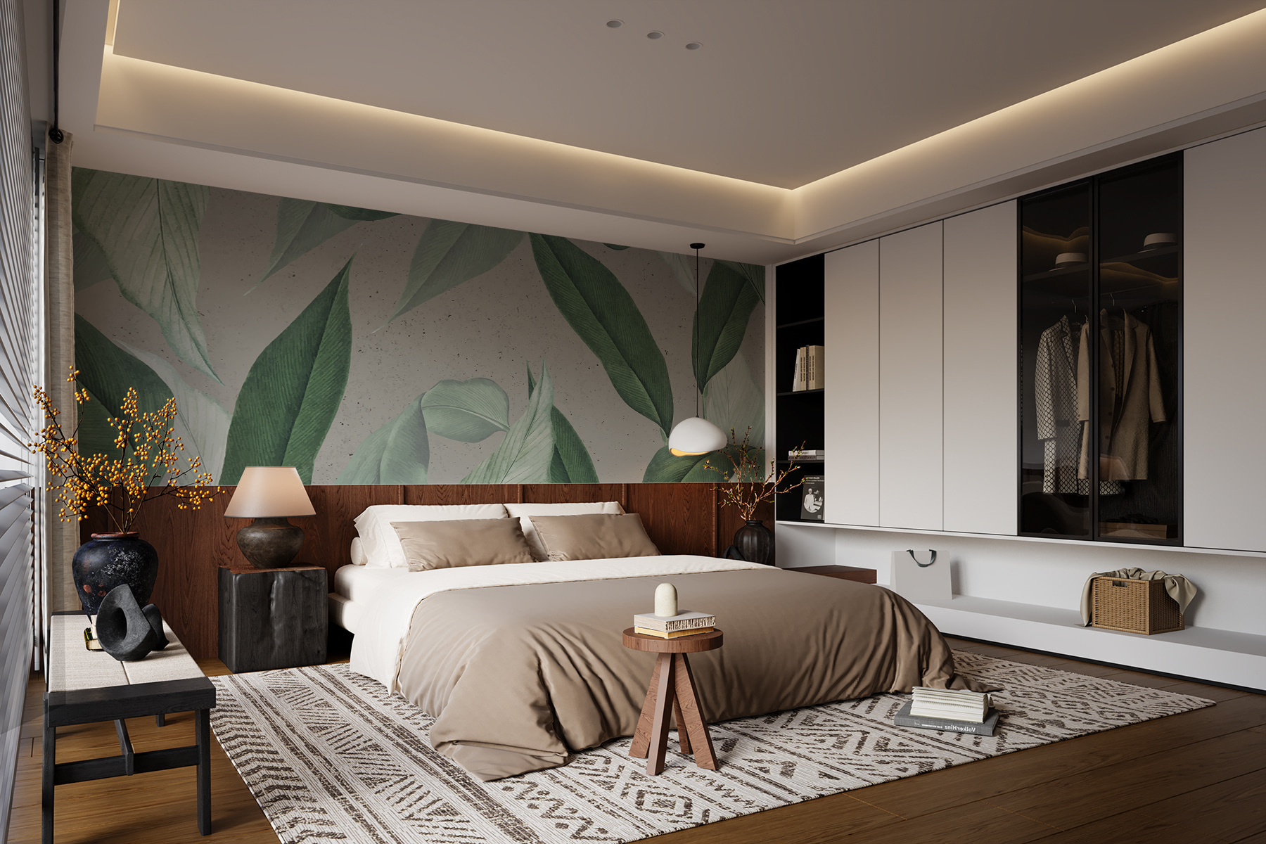 Φανταστείτε να μπαίνετε σε ένα δωμάτιο όπου οι τοίχοι μοιάζουν να ψιθυρίζουν ιστορίες από έναν τροπικό παράδεισο. Αυτή η τοιχογραφία -Πατρόν πράσινων φύλλων- φέρνει αυτή την πλούσια ατμόσφαιρα στον χώρο σας. Είναι σαν η φύση να αποφάσισε να αγκαλιάσει τους τοίχους σας! Ιδανική για να μετατρέψετε ένα κουρασμένο δωμάτιο σε ένα γαλήνιο καταφύγιο, έχει μια ήρεμη, γήινη αίσθηση που σας κάνει να θέλετε να ξαπλώσετε και να ονειρευτείτε. Ποιος θα μπορούσε να φανταστεί ότι τα φύλλα μπορούν να είναι τόσο φιλόξενα και γεμάτα ζωή; Μια απλή αλλά αναζωογονητική πινελιά για κάθε ψυχή που αγαπά τη φύση και θέλει να ανανεώσει τη διακόσμησή της.