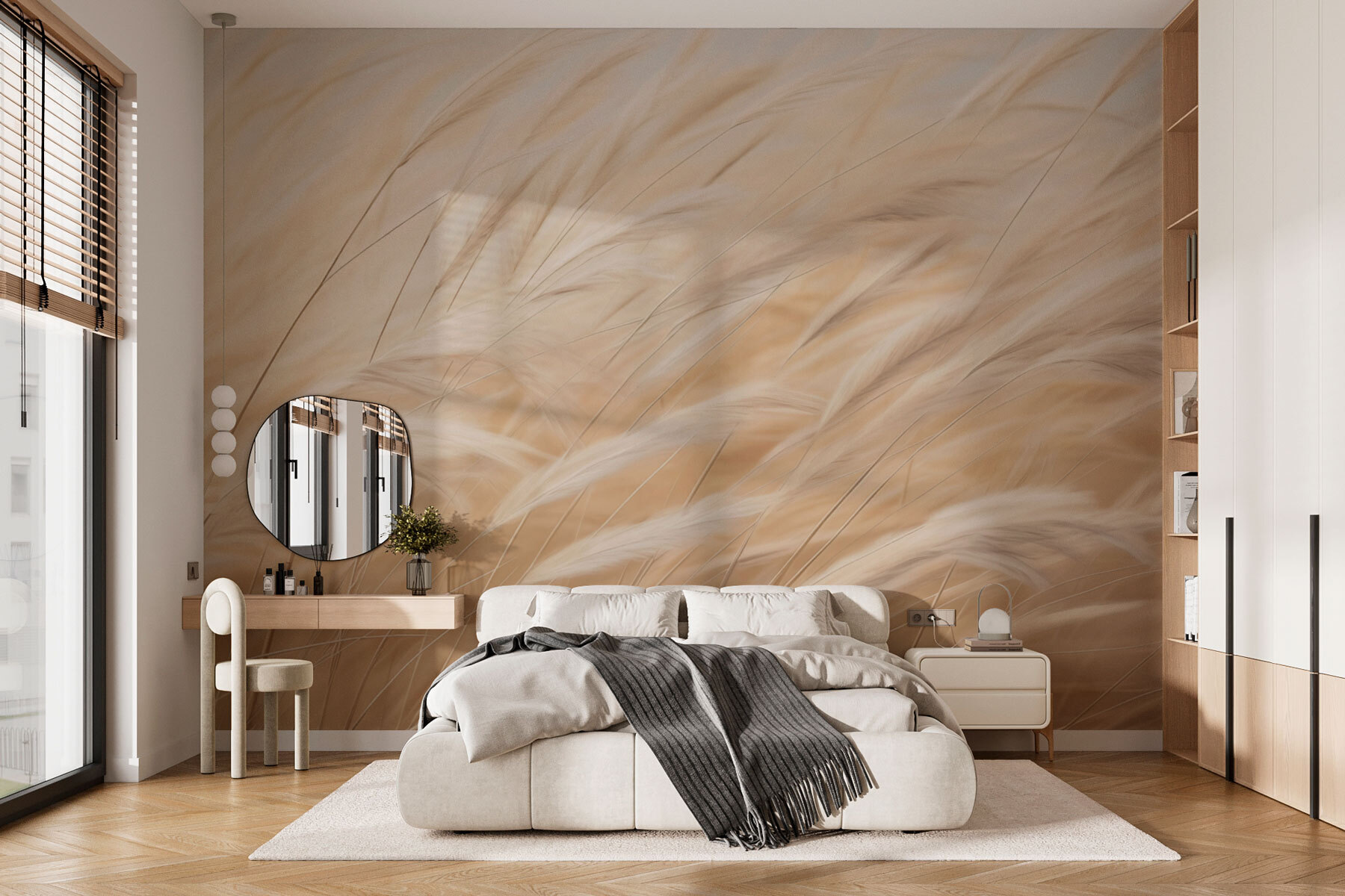 Μεταμορφώστε το χώρο σας με την καταπραϋντική ατμόσφαιρα της τοιχογραφίας “Pale Grasses Swaying Lightly”. Φανταστείτε να μπαίνετε σε ένα γαλήνιο λιβάδι, όπου το απαλό αεράκι παρακινεί τα χρυσά χόρτα να χορέψουν. Αυτή η τοιχογραφία αποτυπώνει αυτή την ειρηνική σκηνή – ιδανική για ένα σαλόνι, υπνοδωμάτιο ή ακόμη και για μια ζεστή γωνιά ανάγνωσης. Είναι σαν να προσκαλείτε τη φύση στο σπίτι σας χωρίς τα έντομα ή τη γύρη. Απλά φανταστείτε να κουλουριάζεστε με ένα βιβλίο, ενώ αυτό το ηρεμιστικό σκηνικό σας περιβάλλει, δημιουργώντας μια ήρεμη απόδραση. Οι λεπτές αποχρώσεις συνδυάζονται αβίαστα με οποιαδήποτε διακόσμηση, καθιστώντας το ένα ευέλικτο κομμάτι που ψιθυρίζει κομψότητα. Το μόνο που μένει να κάνετε; Πάρτε ένα φλιτζάνι τσάι και απολαύστε τη θέα!