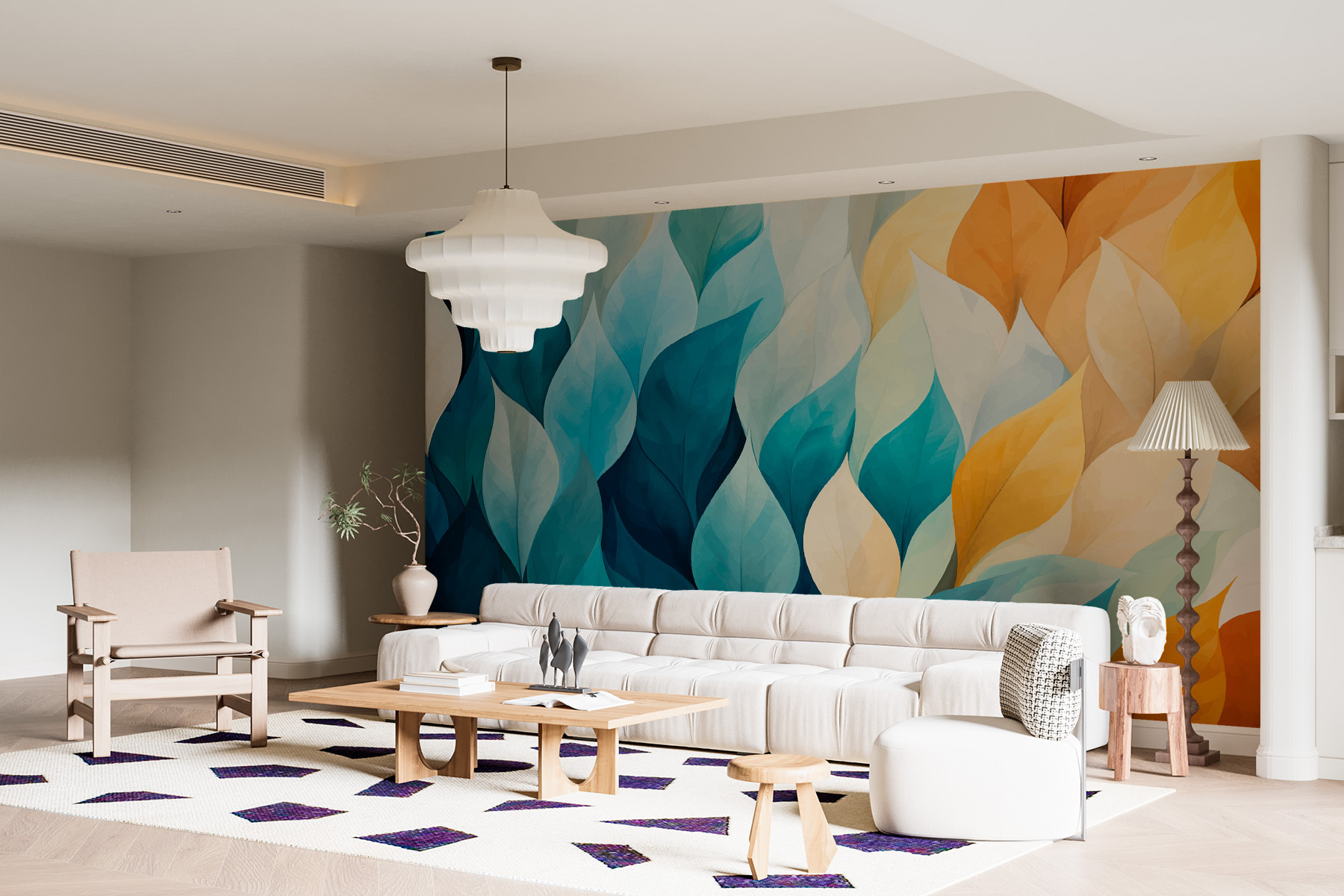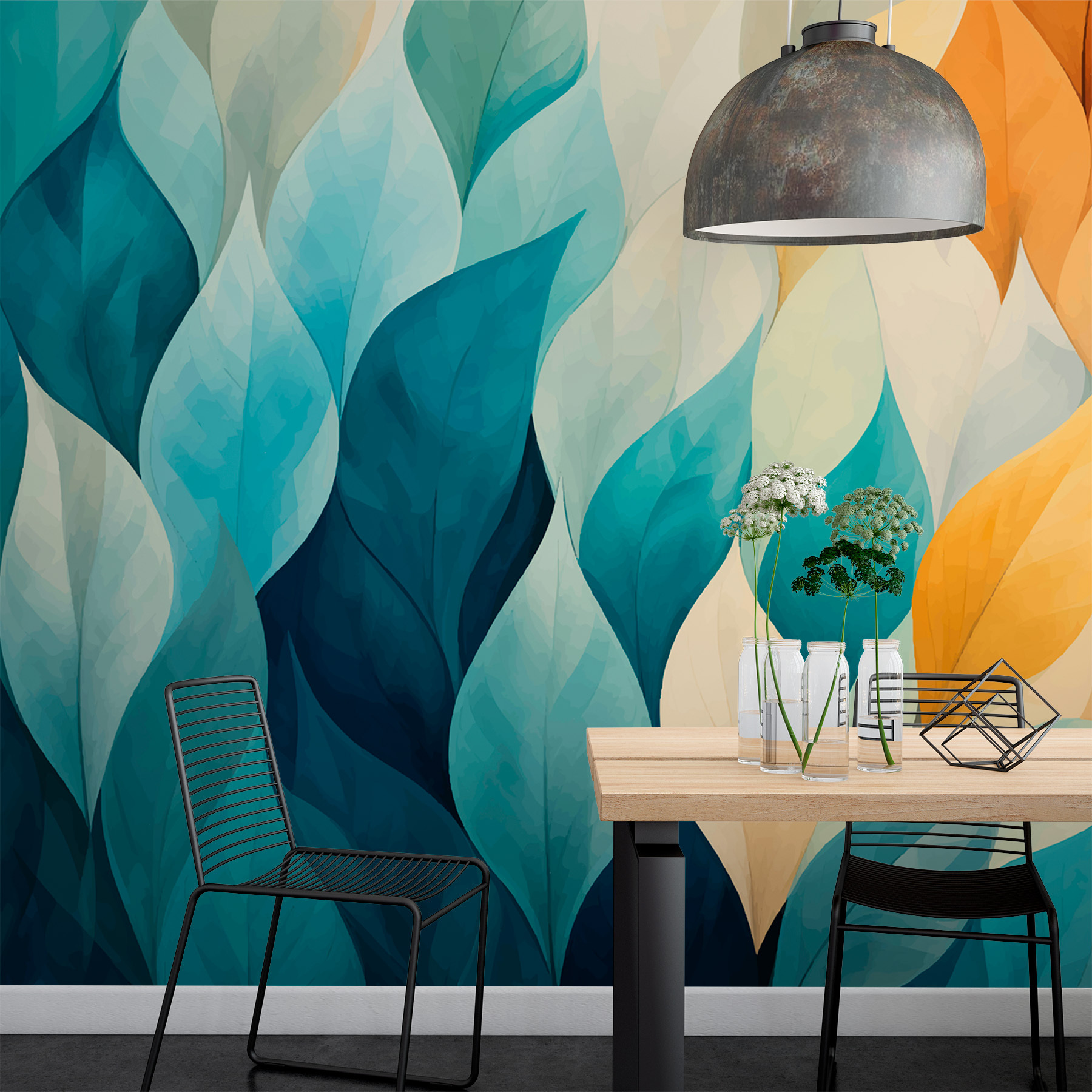 Φανταστείτε αυτή την τοιχογραφία στον τοίχο σας – όπου η φύση συναντά την αφηρημένη τέχνη στον πιο απολαυστικό χορό των χρωμάτων. Το “Πολύχρωμα φύλλα στη σειρά” μοιάζει σαν ένα απαλό αεράκι που φύσηξε μέσα από ένα ζαχαροπλαστείο, αφήνοντας πίσω του μια σειρά από απολαυστικές αποχρώσεις. Τα μπλε αναμειγνύονται με τα κίτρινα, δημιουργώντας μια ζεστή, άνετη ατμόσφαιρα που είναι ιδανική για να πυροδοτήσετε τη δημιουργικότητα ή απλώς να χαλαρώσετε με ένα φλιτζάνι τσάι. Είναι σαν να κάνετε μια βόλτα στη φύση μέσα στο σαλόνι σας, χωρίς τα ενοχλητικά ζωύφια! Κάθε φύλλο μοιάζει να ψιθυρίζει μυστικά ηρεμίας και δημιουργικότητας. Μια γρήγορη λύση για τα μπλουζ του κενού τοίχου!