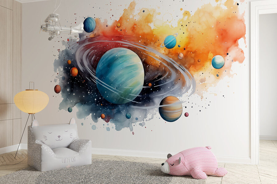 Ονειρευτήκατε ποτέ να έχετε το σύμπαν στο σαλόνι σας; Αυτή η τοιχογραφία “Watercolor of Planets and Stars” σας κάνει να αισθάνεστε ότι κάθε πλανήτης βρίσκεται μόλις ένα βήμα μακριά σας. Ιδανική για τους λάτρεις του διαστήματος – ή για όποιον έχει κοιτάξει ποτέ τον νυχτερινό ουρανό και αναρωτιέται αν οι εξωγήινοι πίνουν καλύτερο καφέ. Οι απαλές ακουαρέλες προσδίδουν μια ονειρική ατμόσφαιρα, ενώ τα αστέρια λάμπουν με θρασύτατη χαρά. Φανταστείτε να κουλουριάζεστε με ένα καλό βιβλίο, νιώθοντας ότι βρίσκεστε ανάμεσα στους γαλαξίες. Δεν είναι απλώς ένας τοίχος – είναι μια περιπέτεια. Είστε έτοιμοι να ξεκινήσετε τη δική σας;