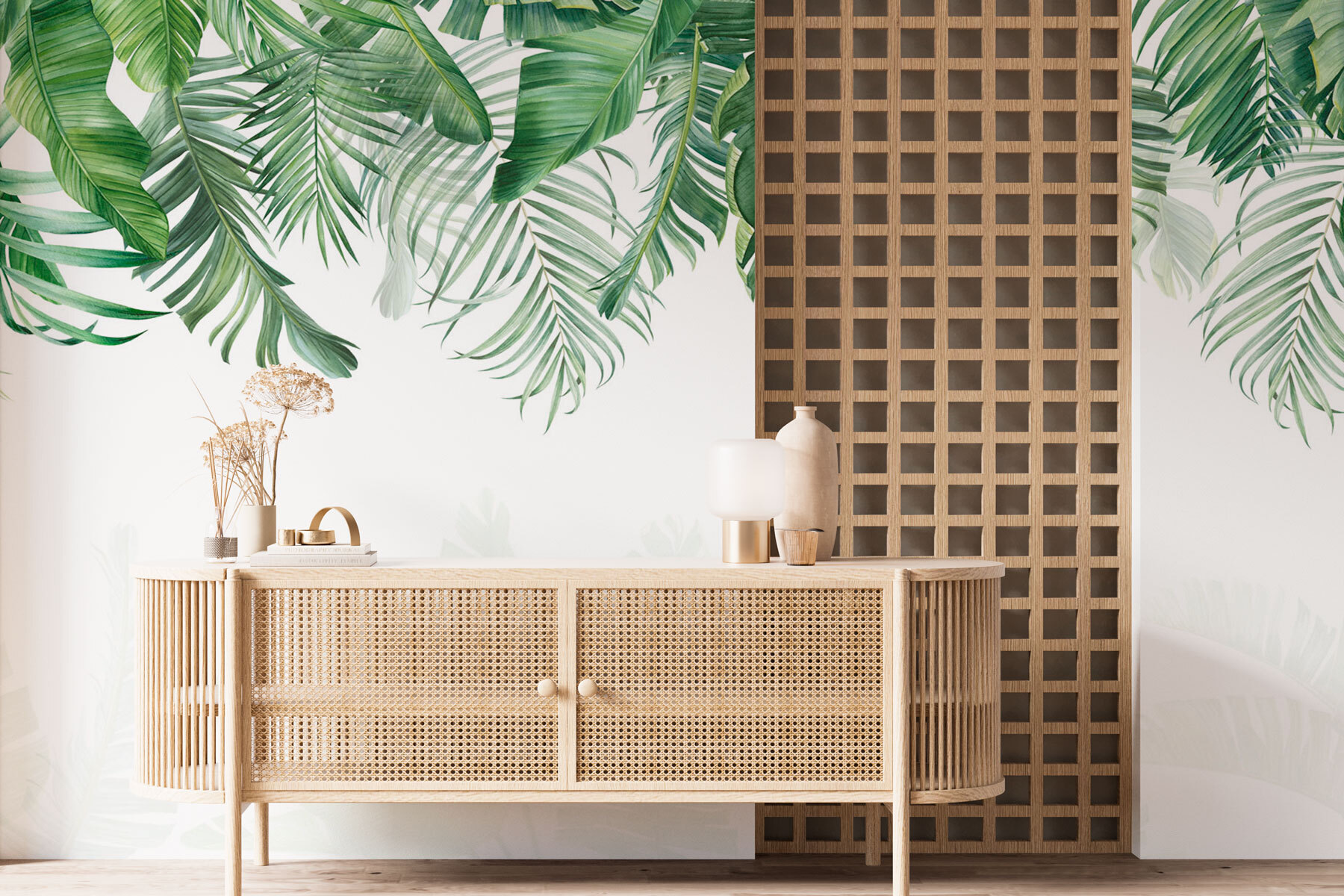 Είναι σαν να προσκαλείτε τη φύση στο εσωτερικό χωρίς τα ενοχλητικά ζωύφια. Επιπλέον, αυτή η τοιχογραφία κρύβει όλες αυτές τις μικρές ατέλειες στους τοίχους σας – αντίο, βαρετό μπεζ! Αφήστε κάθε ματιά σε αυτά τα ζωντανά φύλλα να σας θυμίζει καλοκαιρινές περιπέτειες. Είτε πρόκειται για σαλόνι, υπνοδωμάτιο ή γραφείο στο σπίτι, αυτή η τοιχογραφία φέρνει μια πινελιά διασκέδασης και φρεσκάδας. Ποιος δεν θα ήθελε ο χώρος του να αισθάνεται τόσο ζεστός και φιλόξενος;