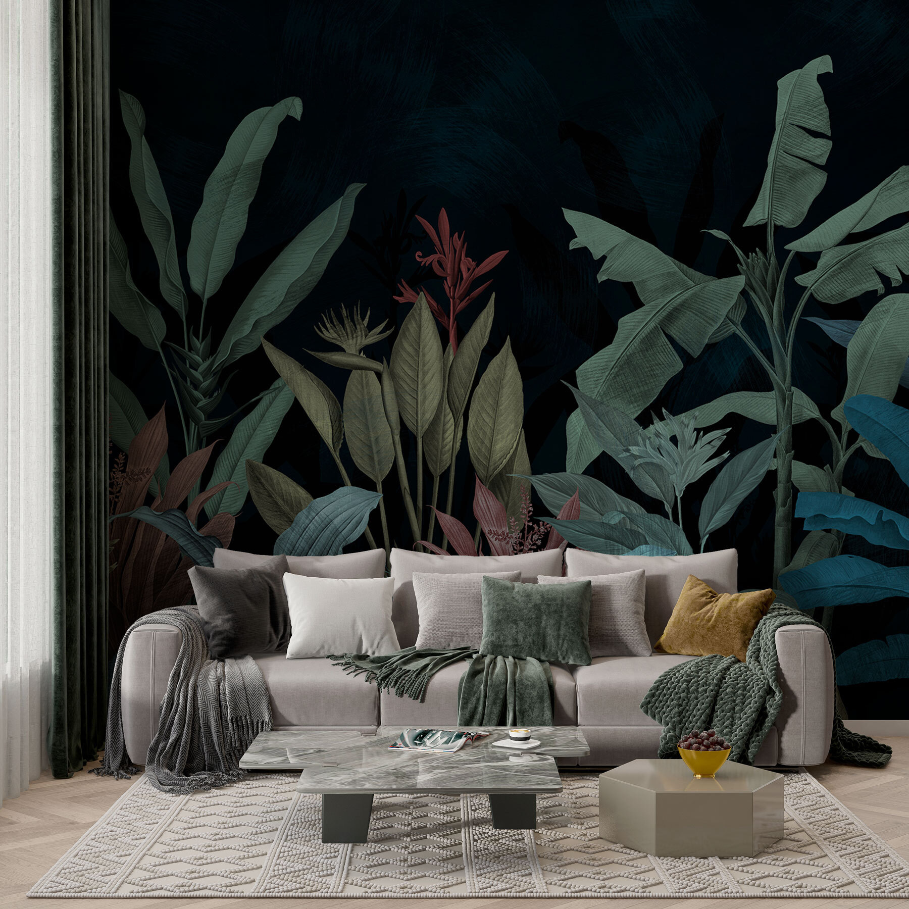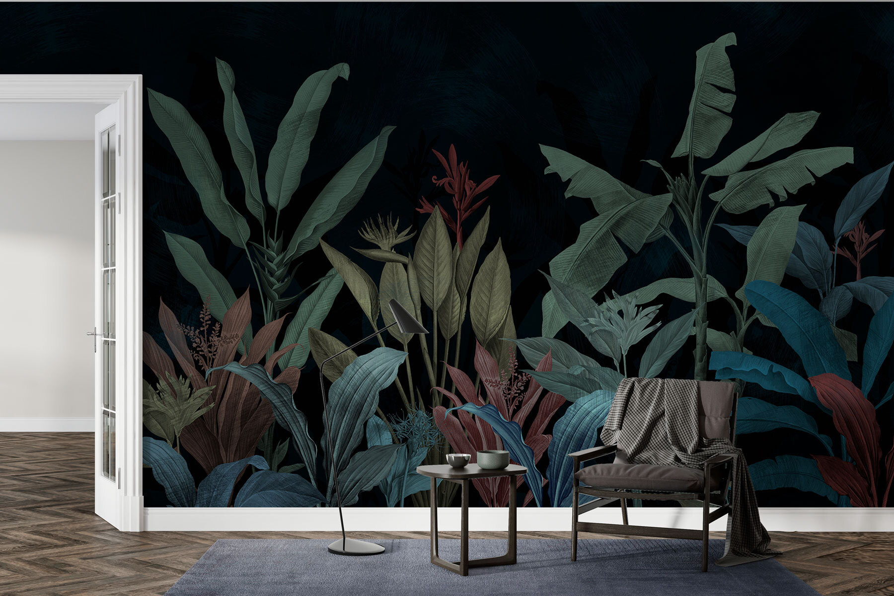 Φανταστείτε να μπαίνετε σε ένα δωμάτιο και να αισθάνεστε σαν να έχετε μπει σε μια μαγευτική νυχτερινή ζούγκλα. Αυτό ακριβώς σας προσφέρει το “Nighttime Serenade in Green and Blue”. Αυτή η τοιχογραφία δεν είναι απλώς μια επένδυση τοίχου – είναι μια διάθεση. Πλούσια πράσινα και μπλε χρώματα παίζουν μαζί σαν μια σιγανή νυχτερινή συμφωνία, ιδανική για ένα σημείο όπου μπορείτε να χαλαρώσετε. Φανταστείτε το εξής: είχατε μια κουραστική μέρα και θέλετε να χαλαρώσετε. Αυτά τα πλούσια φύλλα σας αγκαλιάζουν, ψιθυρίζοντας ιστορίες από μακρινές τροπικές περιοχές. Είναι σαν μια μακρινή περιπέτεια χωρίς το τζετ λαγκ.