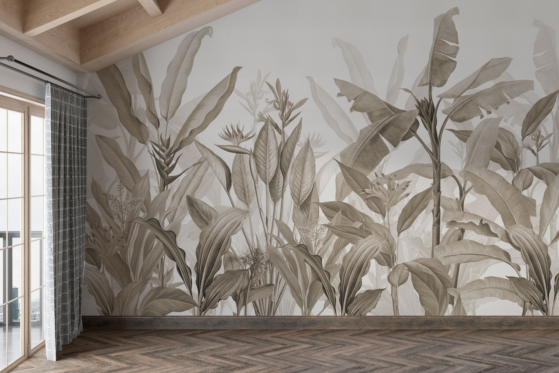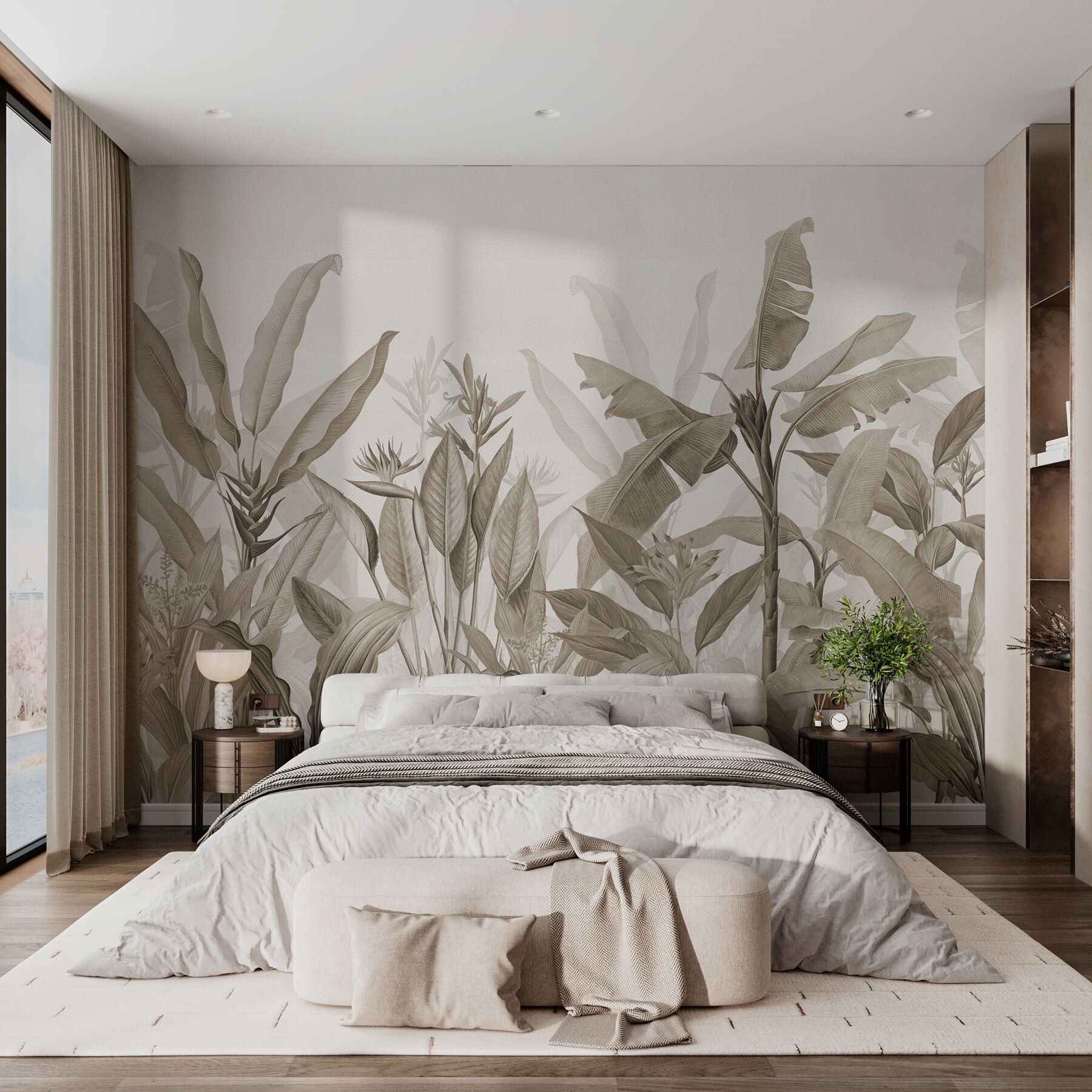 Φανταστείτε να μπαίνετε σε μια γαλήνια ζούγκλα κάθε φορά που μπαίνετε στο δωμάτιό σας. Η τοιχογραφία “Μονόχρωμη ζούγκλα με κομψά φύλλα” μετατρέπει τον τοίχο σας σε μια γαλήνια απόδραση – χωρίς να χρειάζεστε διαβατήριο! Πρόκειται για την πλούσια ατμόσφαιρα, αλλά σε χαλαρωτικούς μονόχρωμους τόνους που δεν θα σας φωνάζουν. Σκεφτείτε ήσυχα πρωινά με έναν καφέ, το αγαπημένο σας βιβλίο και έναν απροσδόκητο φίλο – ένα καταπράσινο φύλλο που μοιάζει να σας ψιθυρίζει μυστικά. Ιδανικό για τους λάτρεις της φύσης που θέλουν ένα άγγιγμα ζούγκλας χωρίς τα ενοχλητικά έντομα.