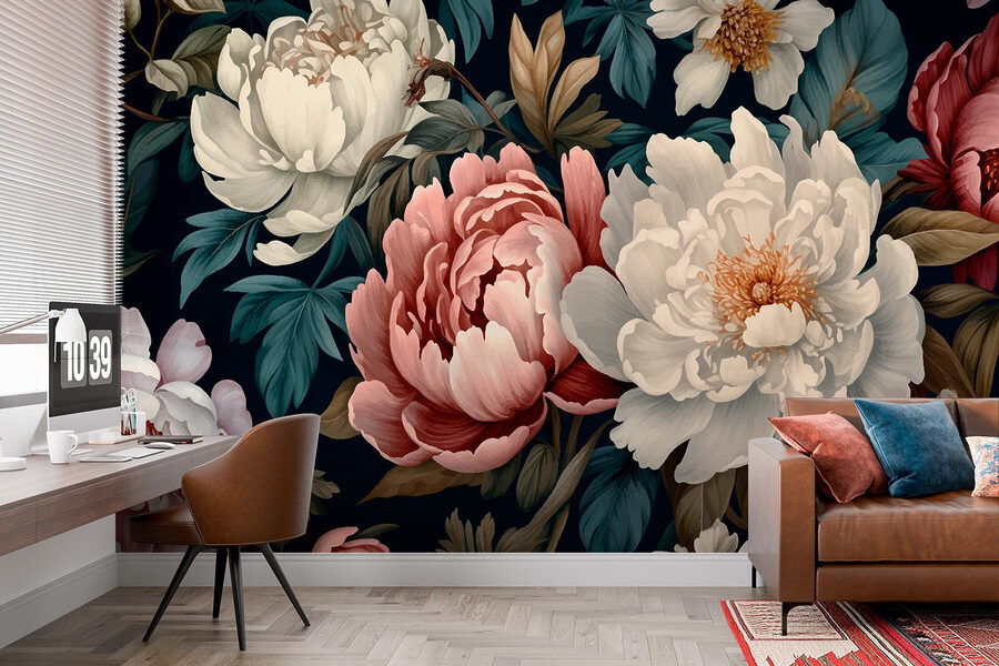 Η μεταμόρφωση ενός δωματίου με την τοιχογραφία “Elegant Floral Symphony in Bloom” είναι σαν να προσκαλείτε τα καλύτερα φυλαγμένα μυστικά της φύσης σε εσωτερικούς χώρους. Φανταστείτε να μπαίνετε σε έναν κήπο όπου οι παιώνιες λικνίζονται και χορεύουν απαλά, με τα πλούσια πέταλά τους να σας προσκαλούν να ρίξετε μια πιο προσεκτική ματιά. Οι βαθιές αποχρώσεις δημιουργούν μια ζεστή ατμόσφαιρα, ιδανική για να αράξετε με ένα βιβλίο ή να μοιραστείτε ένα φλιτζάνι καφέ με έναν φίλο. Δεν είναι απλώς ταπετσαρία, είναι έναυσμα για συζήτηση, ένα σκηνικό για αναμνήσεις. Μια μικρή βουτιά από ανθοκομική απόλαυση μπορεί να μετατρέψει οποιονδήποτε τοίχο σε ένα ζωντανό σημείο εστίασης, σχεδόν σαν η ίδια η μητέρα φύση να αποφάσισε να περάσει για μια επίσκεψη.