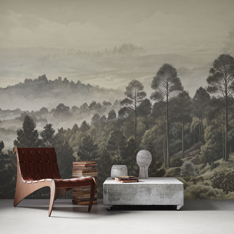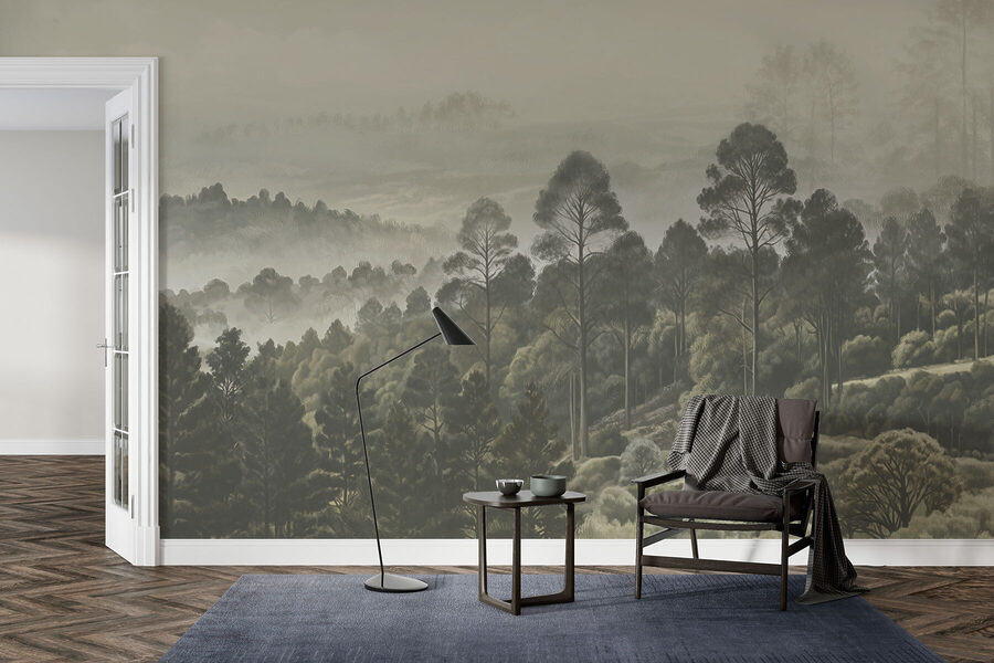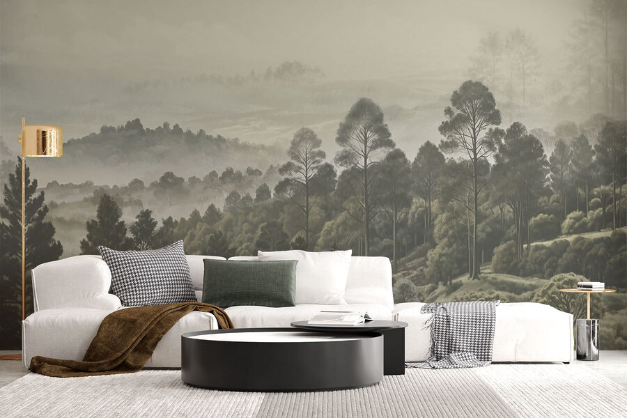 Φανταστείτε να πίνετε καφέ στο σαλόνι σας, αλλά αντί να κοιτάτε έναν απλό τοίχο, έχετε αυτή την ονειρική τοιχογραφία με δέντρα και ομίχλη. Είναι σαν να είστε τυλιγμένοι σε μια ζεστή, ομιχλώδη πρωινή βόλτα στο δάσος – χωρίς τα έντομα, φυσικά. Τα απαλά πράσινα και τα απαλά γκρι χρώματα μοιάζουν με μια απαλή αγκαλιά, δημιουργώντας την τέλεια ζώνη χαλάρωσης. Μπορεί ακόμη και να ξεχάσεις ότι βρίσκεσαι σε εσωτερικό χώρο. Δεν είναι απλώς μια τοιχογραφία, είναι μια ατμόσφαιρα. Μια διακριτική απόδραση χωρίς να βγείτε ποτέ από το σπίτι. Απλά μην εκπλαγείτε αν οι καλεσμένοι σας μείνουν λίγο παραπάνω!