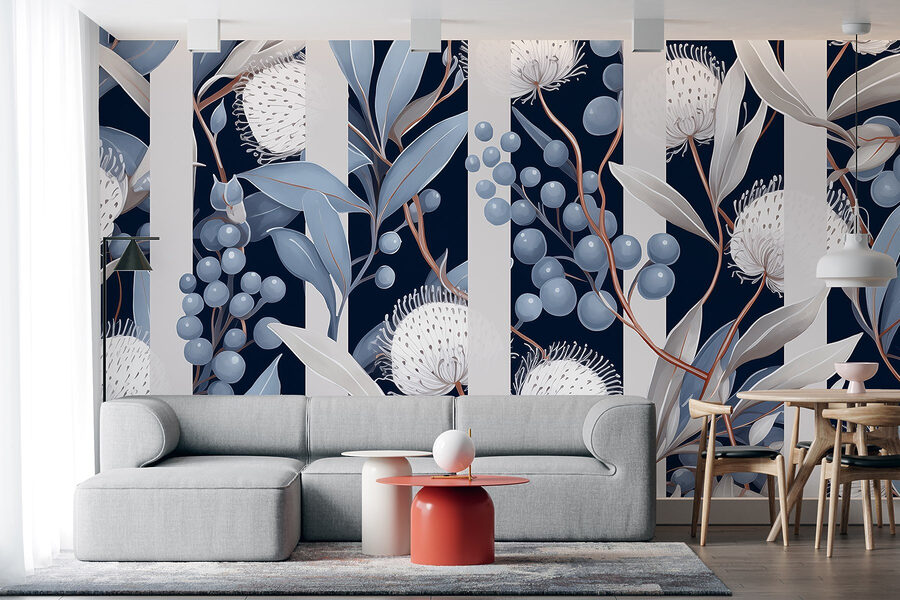 Εδώ είναι μια τοιχογραφία που θα κάνει τους τοίχους σας να ψιθυρίζουν γλυκά μηνύματα κάθε πρωί. Φανταστείτε να ξυπνάτε με αυτόν τον απολαυστικό χορό από μπλε και λευκά λουλούδια, σαν έναν μυστικό κήπο κρυμμένο στο δωμάτιό σας. Τα φύλλα τυλίγονται σε απαλές θηλιές, ενώ τα λουλούδια -ω, τα λουλούδια- στριφογυρίζουν σαν να είναι μπλεγμένα σε ένα αεράτο μπαλέτο. Βάλτε το στο σαλόνι σας και παρακολουθήστε τις συζητήσεις να κυλούν, εμπνευσμένες από την ίδια την καλλιτεχνία της φύσης. Είναι σαν να έχετε ένα κομμάτι γαλήνιας, απόκοσμης ομορφιάς στο σπίτι σας. Δεν είναι μαγευτικό;