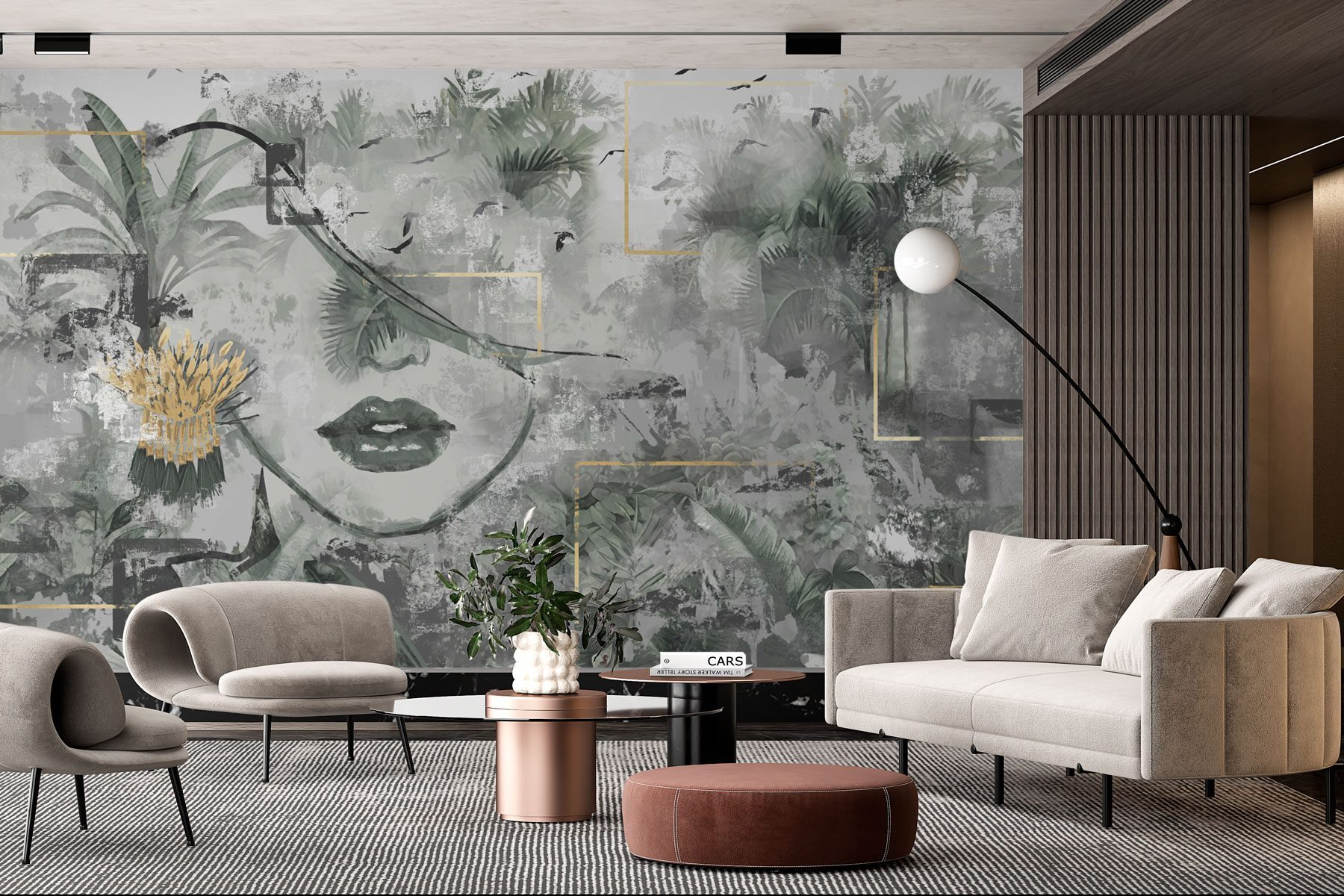 Μεταμορφώστε το χώρο σας με αυτή την εκπληκτική τοιχογραφία που συνδυάζει όμορφα το πρόσωπο μιας γυναίκας με ζωντανά φυτά. Φανταστείτε να μπαίνετε σε ένα δωμάτιο όπου η φύση χορεύει με την τέχνη, ενώ πίνετε τον πρωινό σας καφέ. Τα απαλά πράσινα και οι πολυεπίπεδες υφές δημιουργούν μια γαλήνια ατμόσφαιρα, ιδανική για ήσυχα βράδια ή ζωηρές συγκεντρώσεις. Είναι σαν να έχετε έναν μυστικό κήπο μέσα στο σπίτι, όπου κάθε ματιά διηγείται μια ιστορία. Ιδανική για όποιον αγαπάει μια μοναδική πινελιά, αυτή η τοιχογραφία δεν είναι απλώς διακόσμηση – είναι μια ατμόσφαιρα, μια αφορμή για συζήτηση και μια καθημερινή υπενθύμιση για να αγκαλιάζουμε την ομορφιά γύρω μας. Ποιος ήξερε ότι ένας τοίχος μπορεί να πει τόσα πολλά;