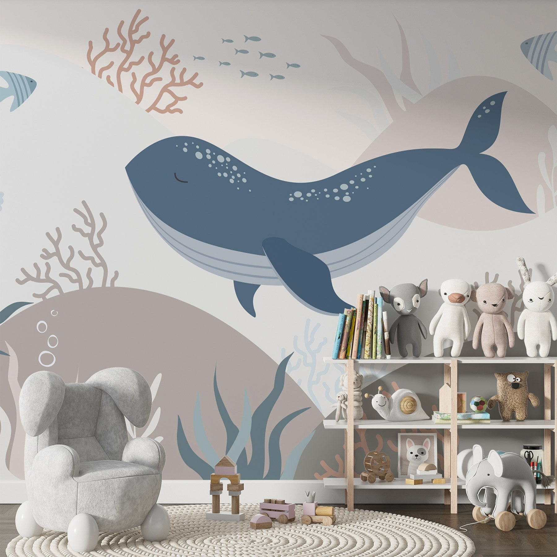 Φανταστείτε ένα άνετο δωμάτιο με αυτή την εκπληκτική τοιχογραφία “Whale Swimming in the Ocean” – είναι σαν να έχετε ένα γαλήνιο κομμάτι της θάλασσας στον τοίχο σας. Ιδανική για τους λάτρεις του ωκεανού και τους ονειροπόλους, αυτή η τοιχογραφία προσδίδει μια παιχνιδιάρικη αλλά και ηρεμιστική ατμόσφαιρα, χάρη στον ευγενικό γίγαντα του βυθού μας. Μπορείτε σχεδόν να ακούσετε τον ψίθυρο των κυμάτων και να νιώσετε την αύρα του ωκεανού. Είναι το είδος του έργου τέχνης που κάνει τους χώρους να αισθάνονται ζωντανοί, προσκαλώντας σας να βουτήξετε στη χαλάρωση και το θαύμα. Εξαιρετική αφορμή για συζήτηση, επίσης – ποιος δεν θα ήθελε να συζητήσει για τις φάλαινες που ταξιδεύουν στο σαλόνι;