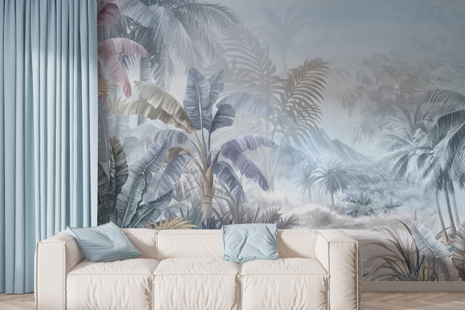 Μεταμορφώστε οποιονδήποτε χώρο σε μια ήρεμη απόδραση με αυτή την εκπληκτική τοιχογραφία ζούγκλας. Φανταστείτε να μπαίνετε σε ένα γαλήνιο τροπικό δάσος, όπου τα πλούσια φύλλα λικνίζονται απαλά και τα απαλά χρώματα δημιουργούν μια χαλαρωτική ατμόσφαιρα. Είναι σαν μια μίνι-διακοπή στον τοίχο σας – δεν απαιτούνται αεροπορικά εισιτήρια! Το λεπτό μείγμα μπλε, πράσινων και απαλών παστέλ χρωμάτων είναι αναζωογονητικό, σχεδόν σαν πρωινή ομίχλη σε έναν τροπικό παράδεισο. Είτε πρόκειται για ένα άνετο σαλόνι είτε για ένα ηλιόλουστο υπνοδωμάτιο, αυτή η τοιχογραφία δίνει ζωή και χαλάρωση στο δωμάτιο. Ιδανική για τους λάτρεις της φύσης και τους ονειροπόλους! Επιπλέον, προσκαλεί κάπως εκείνον τον γείτονα που πάντα λέει ότι χρειάζεται περισσότερη φύση στη ζωή του. Ξέρετε αυτόν!