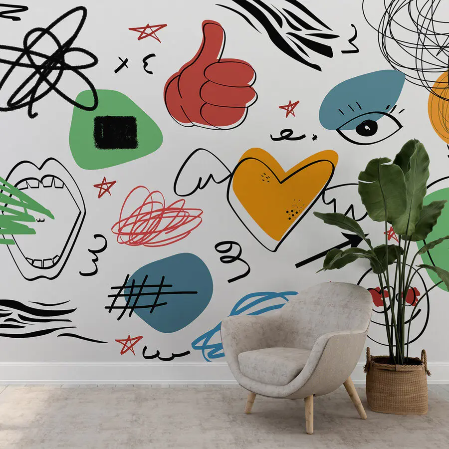 Μεταμορφώστε το χώρο σας σε έναν ζωντανό καμβά με αυτή τη ζωντανή τοιχογραφία, “Συλλογή διαφορετικών χρωματιστών αντικειμένων”. Είναι σαν κάποιος να διοργάνωσε ένα πολύχρωμο, καλλιτεχνικό πάρτι κομφετί ακριβώς στον τοίχο σας! Με παιχνιδιάρικα σχήματα και τολμηρές αποχρώσεις, μοιάζει φρέσκο και διασκεδαστικό, ιδανικό για να πυροδοτήσετε τη δημιουργικότητα ή απλώς να φτιάξετε τη διάθεση του δωματίου. Φανταστείτε να κουλουριάζεστε με ένα φλιτζάνι καφέ, απορροφώντας όλα τα ιδιόμορφα σχέδια – κάθε ματιά αποκαλύπτει κάτι καινούργιο, μια μικρή έκπληξη που σας περιμένει. Αυτή η τοιχογραφία δεν είναι απλώς διακόσμηση- είναι έναυσμα για συζήτηση, για να ανεβάσει τη διάθεση. Οι τοίχοι σας μπορούν επιτέλους να εκφράσουν λίγη προσωπικότητα!