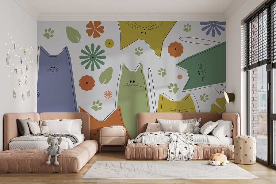 Φέρτε μια πινελιά ιδιοτροπίας σε κάθε δωμάτιο με αυτή την απολαυστική τοιχογραφία τοίχου με ένα ιδιόρρυθμο πλήρωμα από γάτες που χαριεντίζονται ανάμεσα σε ζωντανά λουλούδια και φύλλα. Φανταστείτε αυτά τα γοητευτικά προσωπάκια να ξεπροβάλλουν καθώς πηδούν από τοίχο σε τοίχο, με την παιχνιδιάρικη ενέργειά τους να φωτίζει το χώρο σας. Ιδανικό για τους λάτρεις των γατών – ποιος δεν θέλει η διακόσμησή του να αντανακλά λίγη προσωπικότητα; Είναι σαν να έχετε ένα κατοικίδιο ζώο χωρίς να χρειάζεται να κάνετε την ανάγκη για το κουτί της άμμου! Απλά φανταστείτε άνετα βράδια σε έναν παράδεισο γεμάτο γάτες, πίνοντας τσάι και απολαμβάνοντας αυτές τις χνουδωτές δονήσεις. Αυτή η τοιχογραφία δεν διακοσμεί απλώς, αλλά αφηγείται μια ιστορία χαράς και παιχνιδιού, κάνοντας κάθε χώρο να νιώθει σαν σπίτι.