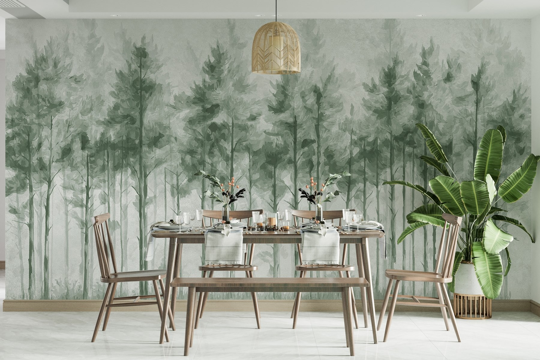 Μεταμορφώστε έναν απλό τοίχο σε μια γαλήνια απόδραση με αυτή την τοιχογραφία “Ομάδα δέντρων σε δάσος”. Φανταστείτε να μπαίνετε σε ένα ήπιο δάσος, όπου το απαλό πράσινο και η λεπτή ομίχλη σας προσκαλούν να πάρετε μια βαθιά ανάσα και να χαλαρώσετε. Είναι σαν να φέρνετε ένα κομμάτι της φύσης σε εσωτερικούς χώρους – χωρίς ζωύφια, χωρίς λασπωμένες μπότες! Ιδανική για μια ζεστή γωνιά του σαλονιού ή ένα ηρεμιστικό καταφύγιο στο υπνοδωμάτιο, αυτή η τοιχογραφία ψιθυρίζει ηρεμία. Φανταστείτε να πίνετε τον καφέ σας ατενίζοντας αυτά τα δέντρα, αφήνοντας το μυαλό σας να περιπλανηθεί σε ειρηνικά δασικά μονοπάτια. Λίγη φύση μπορεί να κάνει θαύματα για την ψυχή!