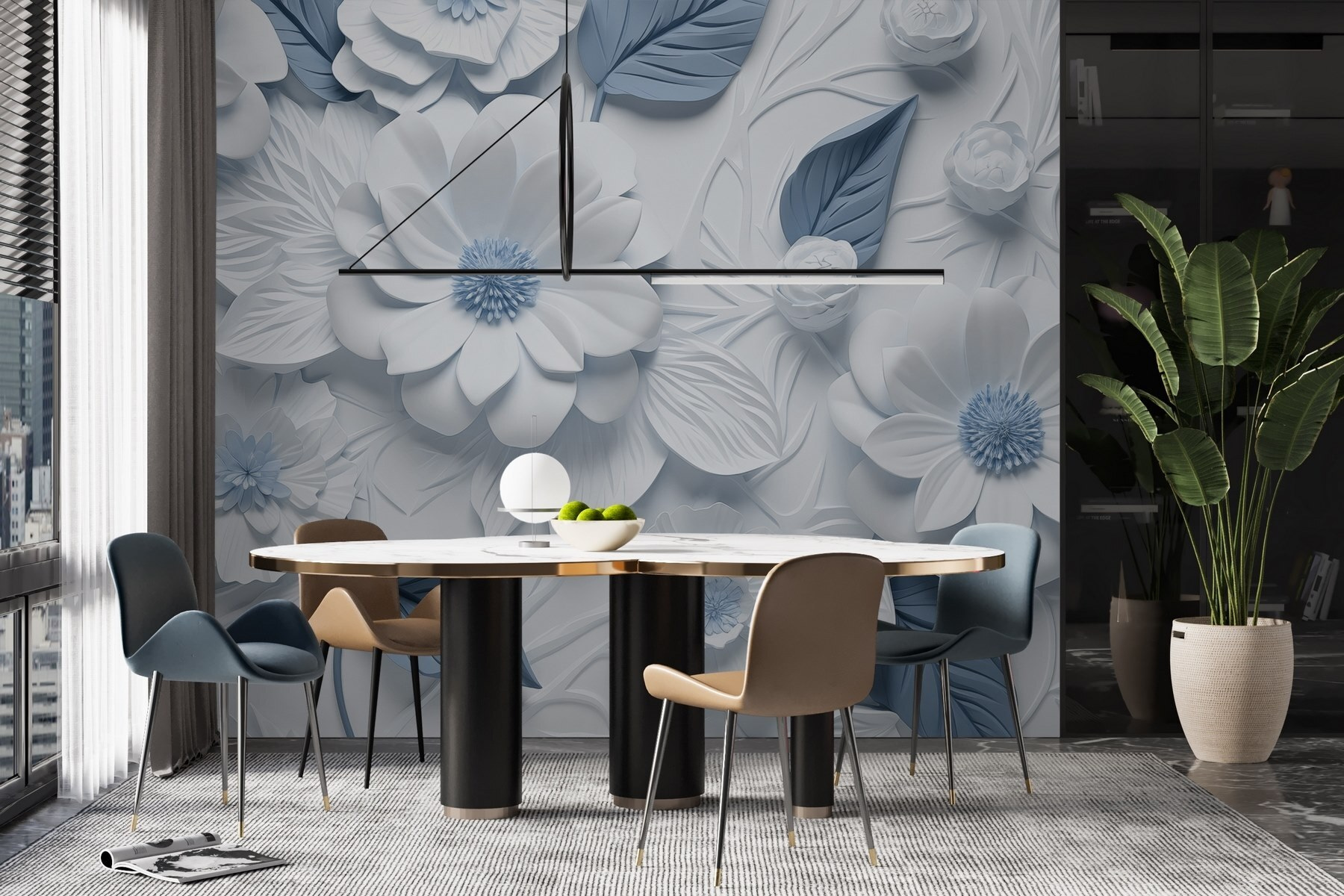 Μεταμορφώστε οποιοδήποτε δωμάτιο σε μια γαλήνια απόδραση με αυτή τη γοητευτική τοιχογραφία τοίχου με υπέροχα λευκά και μπλε λουλούδια. Είναι σαν να μπαίνετε σε έναν γαλήνιο κήπο, μέσα στην άνεση του σπιτιού σας. Οι περίπλοκες λεπτομέρειες των λουλουδιών και των φύλλων δημιουργούν μια αναζωογονητική ατμόσφαιρα, προκαλώντας τη φαντασία ηλιόλουστων ημερών και απαλών ανέμων. Φανταστείτε μια ζεστή γωνιά ανάγνωσης ή ένα ζωντανό σαλόνι που ενισχύεται από αυτή την καλλιτεχνική πινελιά. Οι φίλοι σας θα σταματήσουν στη μέση της συζήτησης, μόνο και μόνο για να το θαυμάσουν. Δεν είναι απλώς διακόσμηση- είναι ένα συναίσθημα-καταπραϋντικό, αναζωογονητικό και ιδανικό για ονειροπόληση.